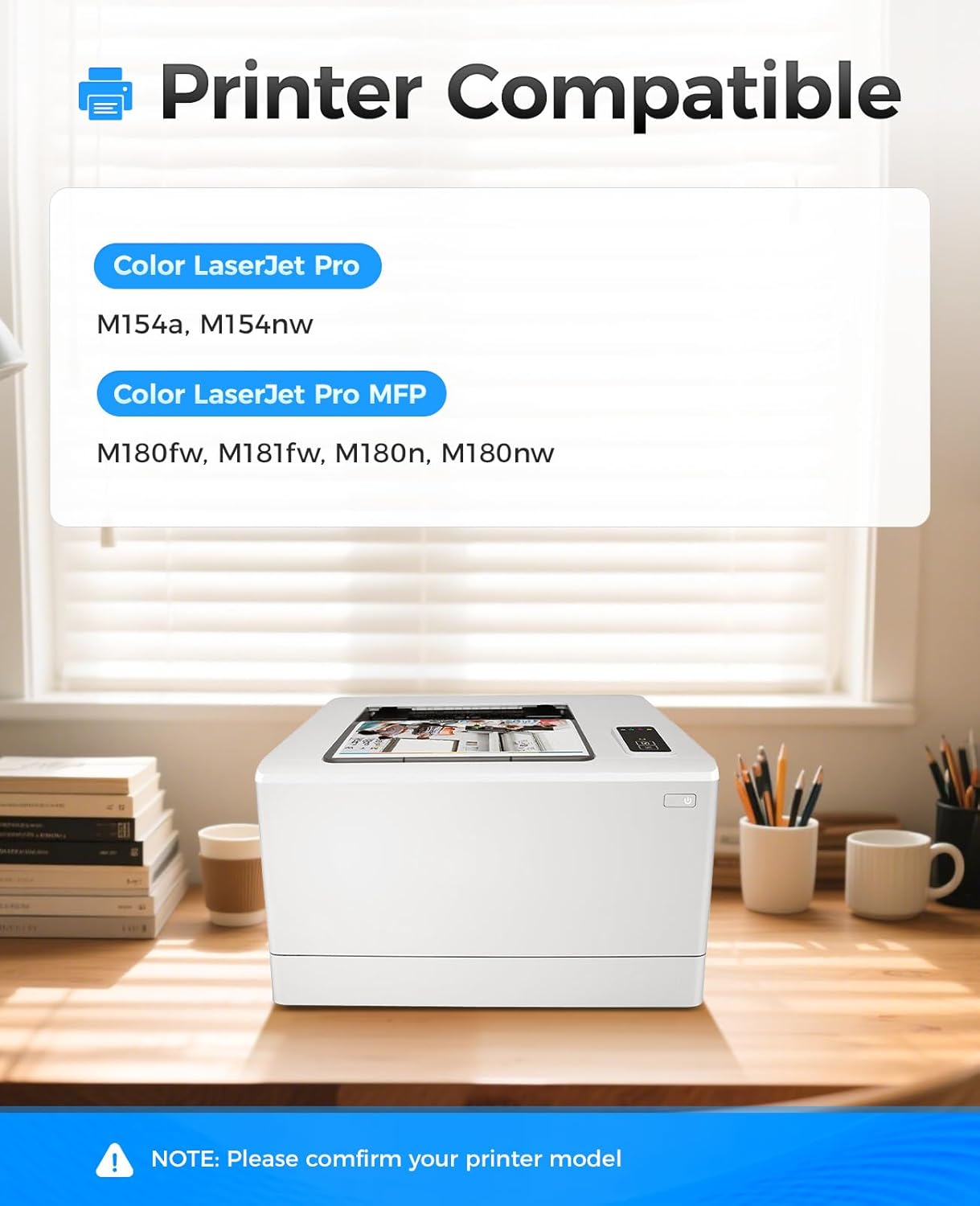 - Compatible Printers: Compatible with HP Color LaserJet Pro M154a M154nw Color LaserJet Pro MFP M180fw M181fw M180n M180nw Printers.