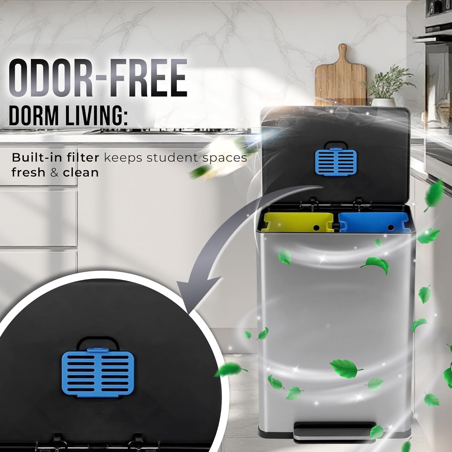 - HIGH CAPACITY WASTE AND RECYCLING SOLUTION: Color coded liners in Blue (30L) and Green (30L) allow for easy sortation of waste and recycling, without sacrificing waste capacity, and fit standard liners using bag cinch.