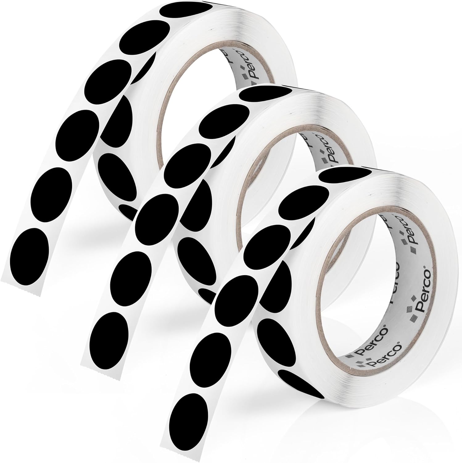 Perco Black 1-Inch Round Circle Dot Sticker Labels - Multi-Roll Pack (3 Rolls, 1,000 Labels Each) - Permanent Adhesive, Vibrant Colors, Strong Hold - Perforated for Easy Use - Made in USA