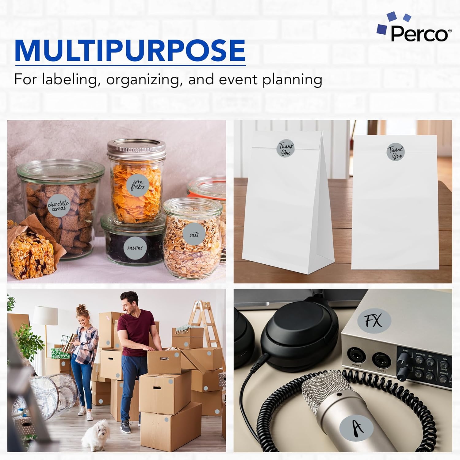 Perco Grey 2-Inch Round Circle Dot Sticker Labels - Multi-Roll Pack (3 Rolls, 500 Labels Each) - Permanent Adhesive, Vibrant Colors, Strong Hold - Perforated for Easy Use - Made in USA