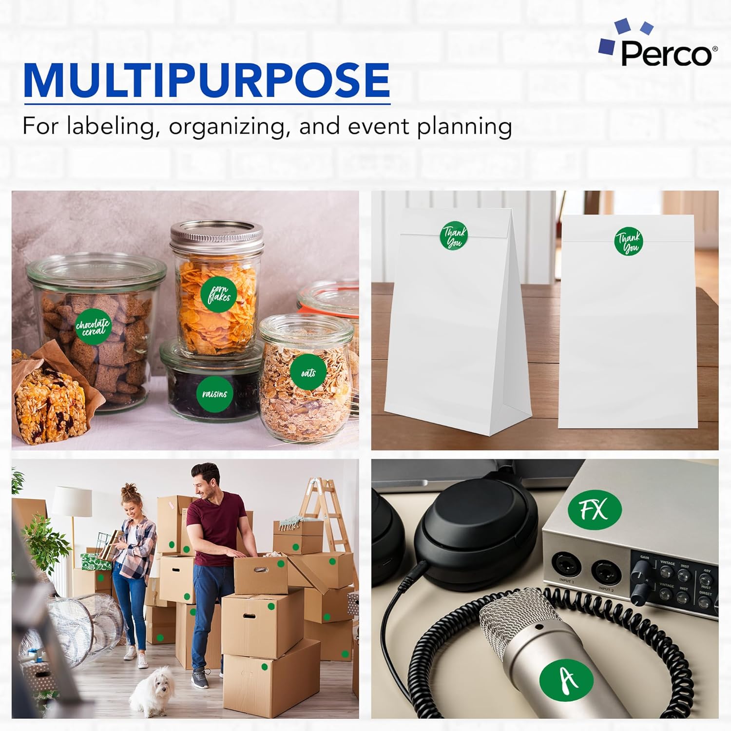 Perco Green 2-Inch Round Circle Dot Sticker Labels - Multi-Roll Pack (3 Rolls, 500 Labels Each) - Permanent Adhesive, Vibrant Colors, Strong Hold - Perforated for Easy Use - Made in USA