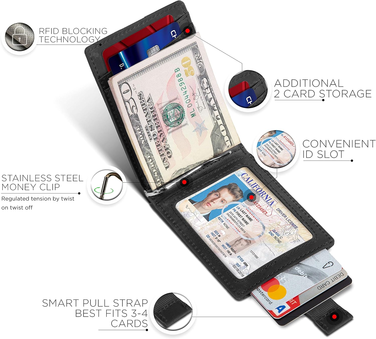 - Minimalist Airtag Wallet - Beautifully crafted from full grain leather, it sports a minimalist design for men who want a slim leather wallet without sacrificing functionality. The ultra-thin wallet is designed to fit directly in the pocket for easy carrying. It best fits 6-8 cards and 10+ bills with an innovative stainless- steel money clip. Wallet Size: 3.9" in. x 2.85" in. 0.5" in.
