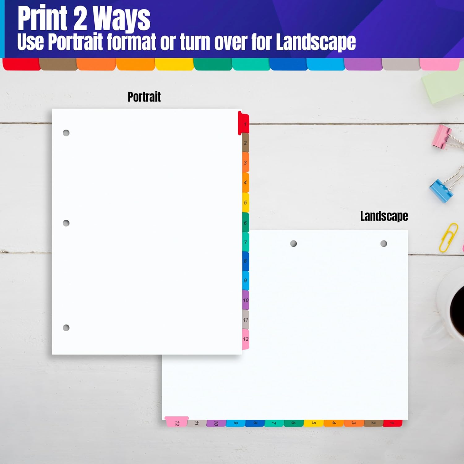 Tab Dividers for 3 Ring Binders – 6 Sets, 1–12 Numbered Index Dividers with Table of Contents – 8.5 x 11 in, 3-Hole Punched – Binder Dividers for School, Office, Filing, Organizing - 6 Pack