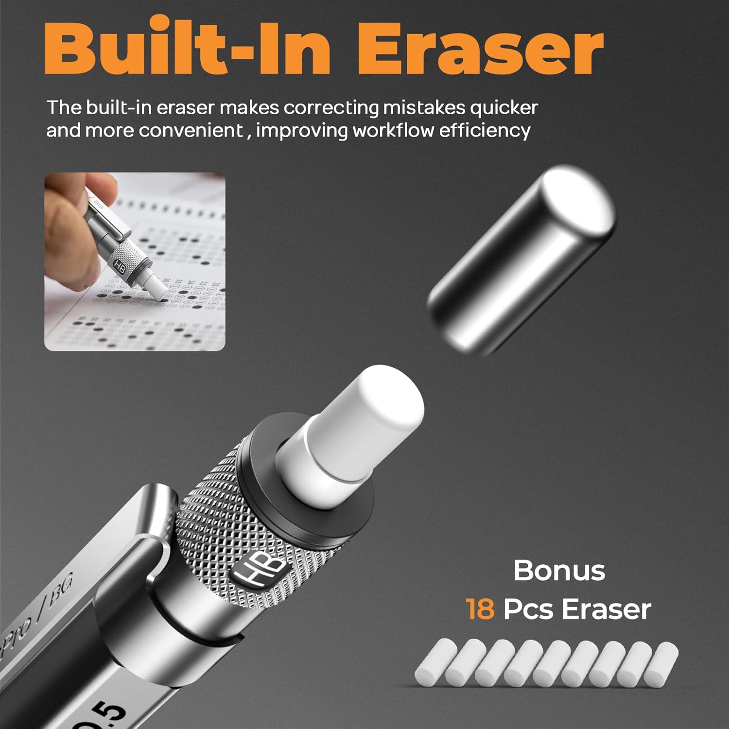 - 0.3/0.5/0.7/0.9mm HB & 2B Lead: Extra durable lead is stronger than standard lead, produce clear and dark line & marks,works with mechanical pencil with no need to sharpen.Easily correct mistakes with a replaceable eraser or 4B eraser. Perfect supplies for writing,drafting, drawing & template work.