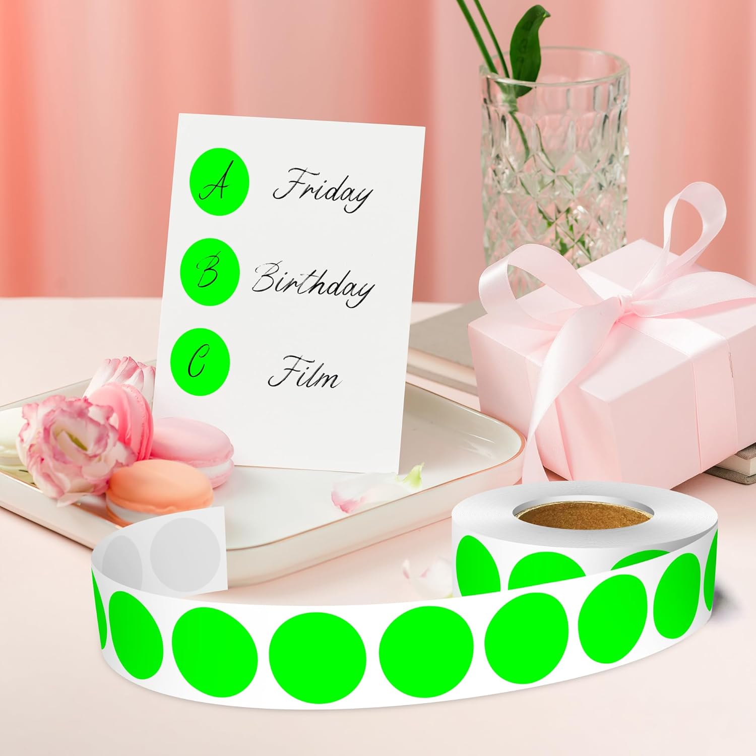 1 Inch Round Color Coding Labels, 1000 Dots Per Roll Fluorescent Green Color Coded Dot Stickers, Round Color Dot Labels for Organizing, Filing, and Storage