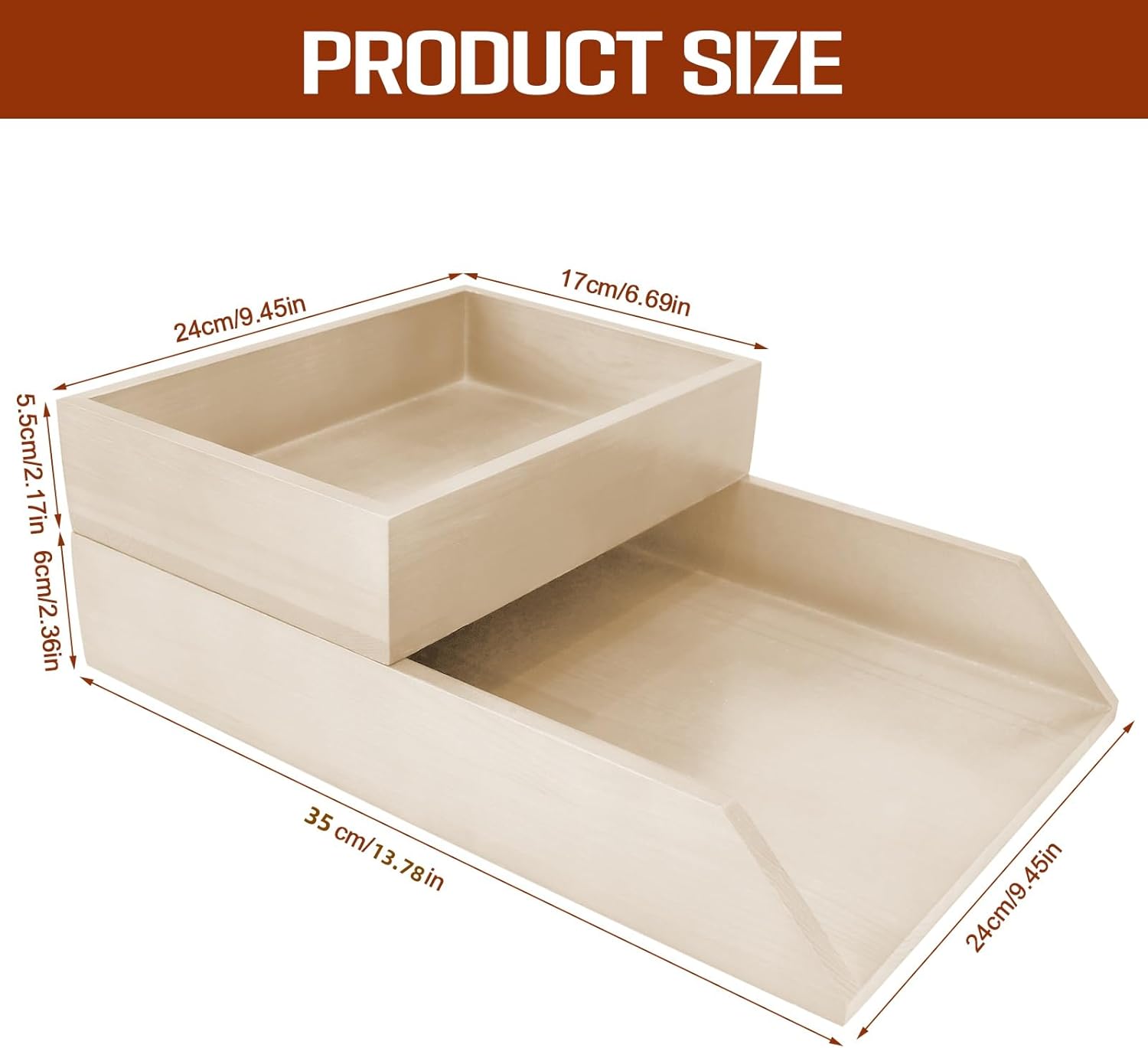 2-Tier Wood Letter Tray Wooden Desk Organizer Letter-Size Tray Magnetic Paper Document File Organizer for Office Supplies Collection Folders Notebooks Desktop Workspace Holder