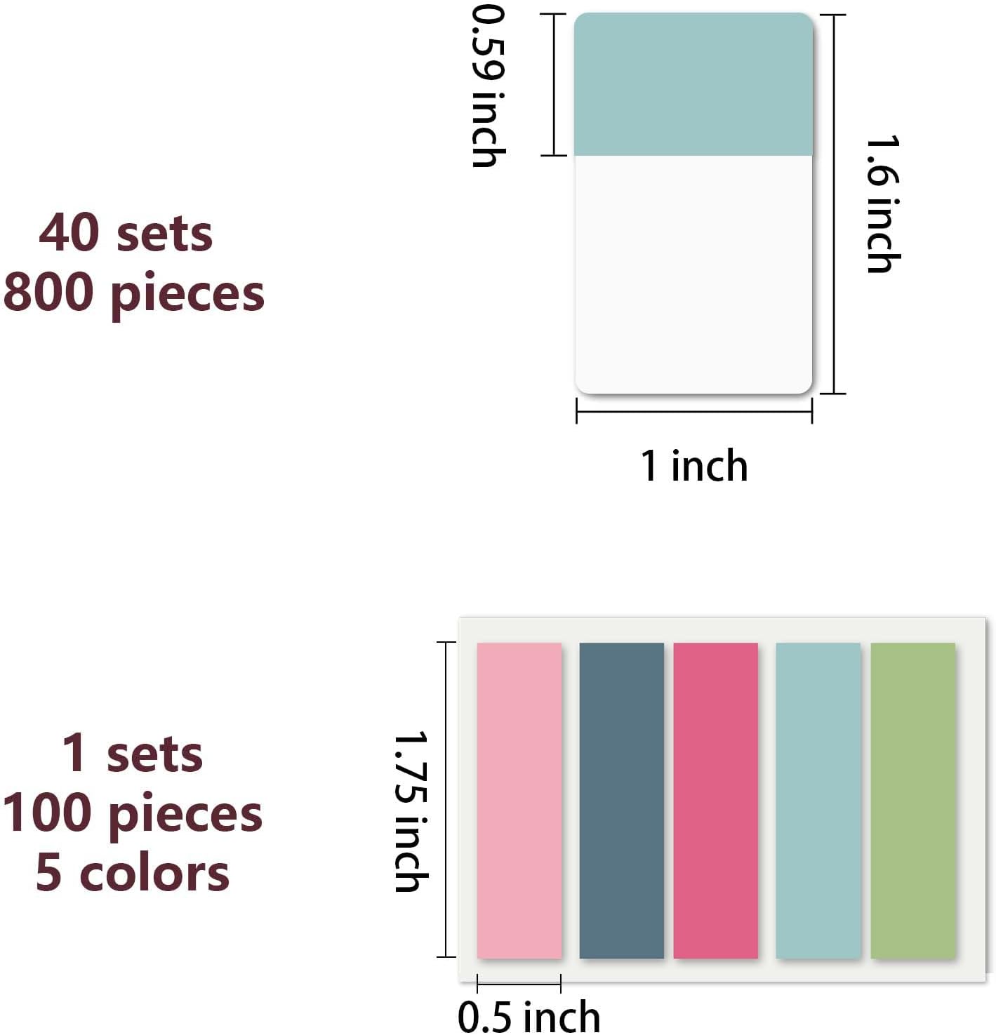 - Book Tabs: totally 900 pieces 41 sets in total,800 pieces 1 inch adhesive index tabs in 40 sets with 20 different neon colors,100 pieces 0.5 inch tabs in 1 sets, 20 pieces each color and color as picture displayed