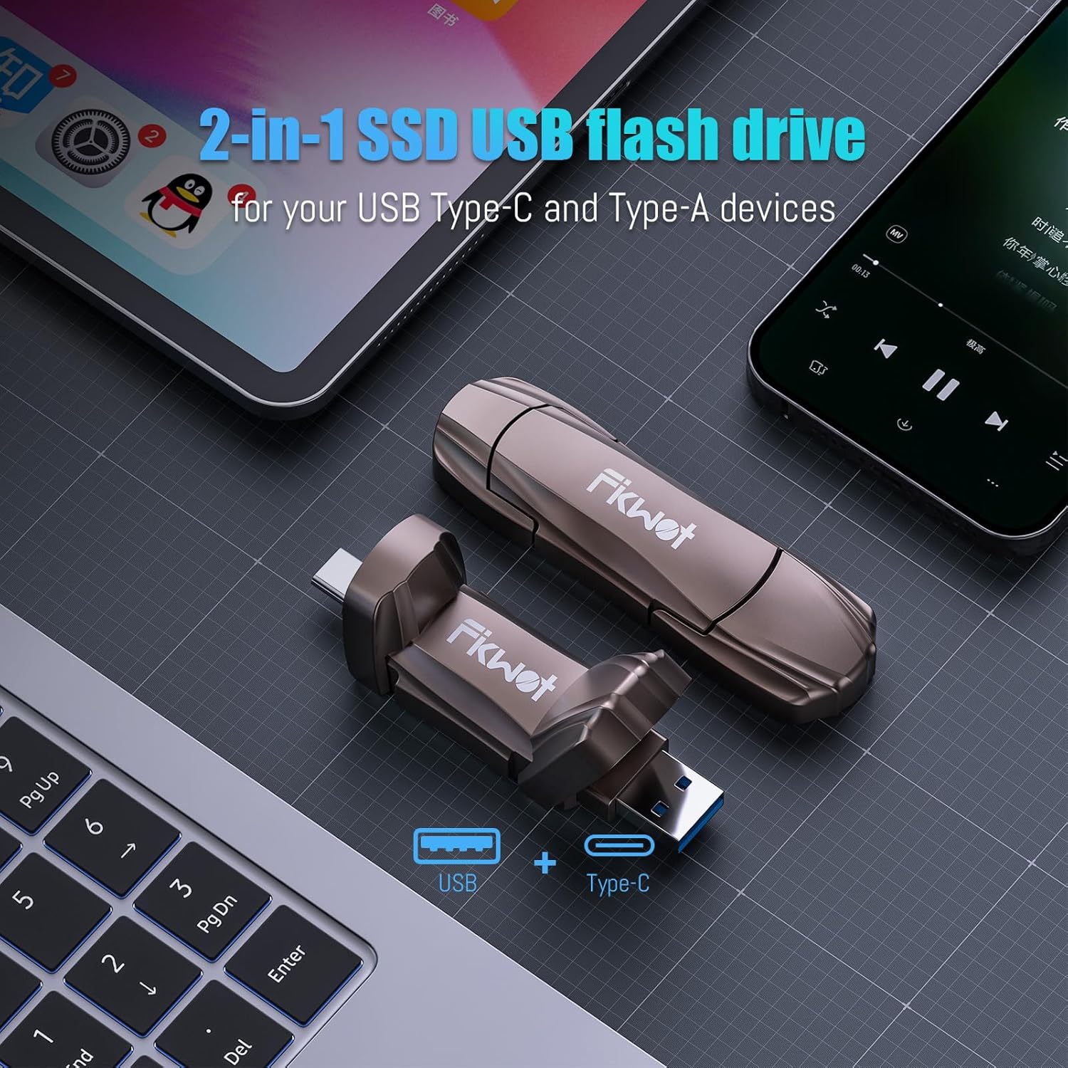 External SSD USB Flash Drive 256GB, Up to 2050MB/s 2-in-1 Type C+ USB A USB3.2 Gen2 Solid State Thumb Drive SSD Stick for iPhone 15/16/Android/Windows/Mac/PC/Laptops
