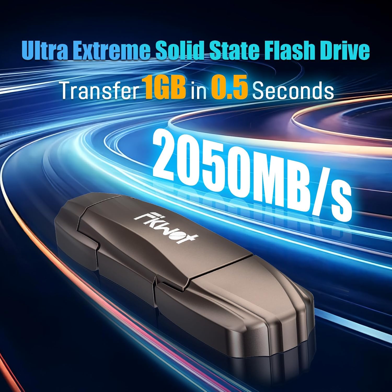 - [Ultra-Fast High Speed]: The FU389 portabl ssd 512GB delivers exceptional performance with a read speed of up to 2050MB/s and write speed of up to 1800MB/s. Experience transfer speeds dozens of times faster than traditional USB drives, perfect for storing large files quickly
