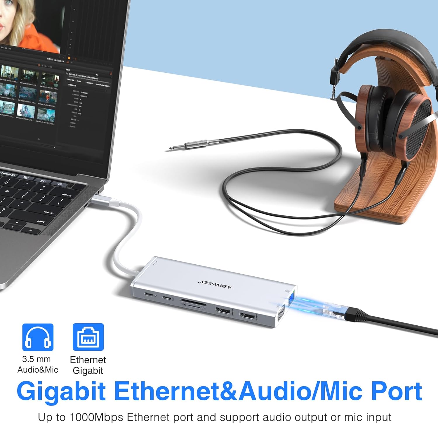 - USB C to Gigabit Ethernet Adapter and Mic/Audio Port: The Dell Docking station supports 10/100/1000BASE-T Lan networks, just plug in an ethernet cable, you can enjoy the ultra-fast gigabyte ethernet speed and the reliability of a wired connection directly. Worry-free about WIFI's instability and interference from USB 3.0; Also, this usb c dock have a 3.5mm Mic/Audio(2 in 1) port for you to put in your wired headset, so that you can enjoy music without disturbing others