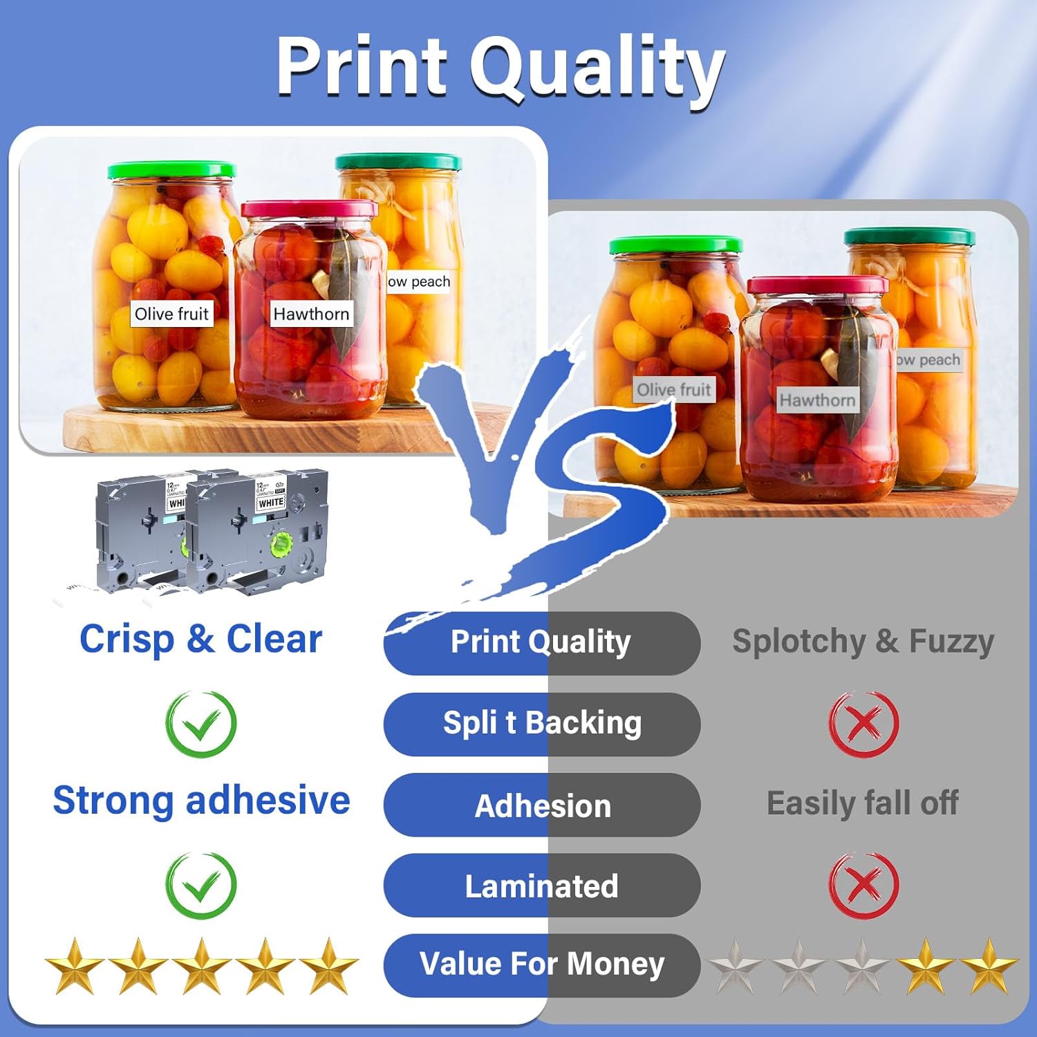 - [Wide Compatibility] Tze231-4Pack Labeling maker tapes Compatible with brother p-touch tz tape 12mm 0.47 laminated white widely used in Indoor and Outdoor, is ideal for labeling kitchen appliances such as refrigerators, ishwashers, and microwaves, as well as for organizing shelves and storage cabinet, including in Home organized,Office,School,Garden,Nursing,Camping,Factory,Laboratory,Hospital,Rrestaurant,Stores,Small business,Hotel and more