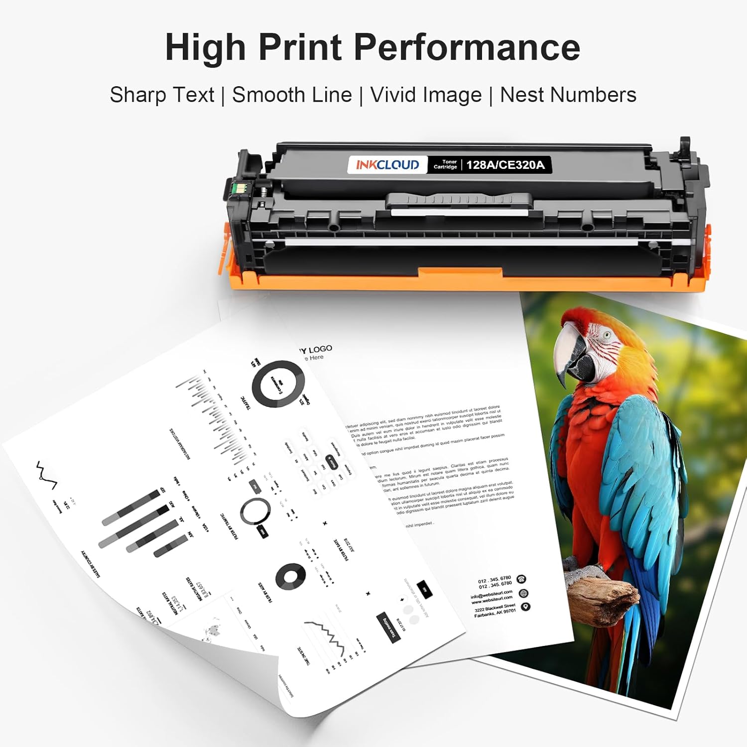 - High Performance: INKCLOUD 128A Toner Cartridges High Yield 4 Pack with latest chips Compatible Toner Cartridges for Canon printers deliver Sharp Texts, Crisp Images and Stable Compatibility. Easily complete your projects.