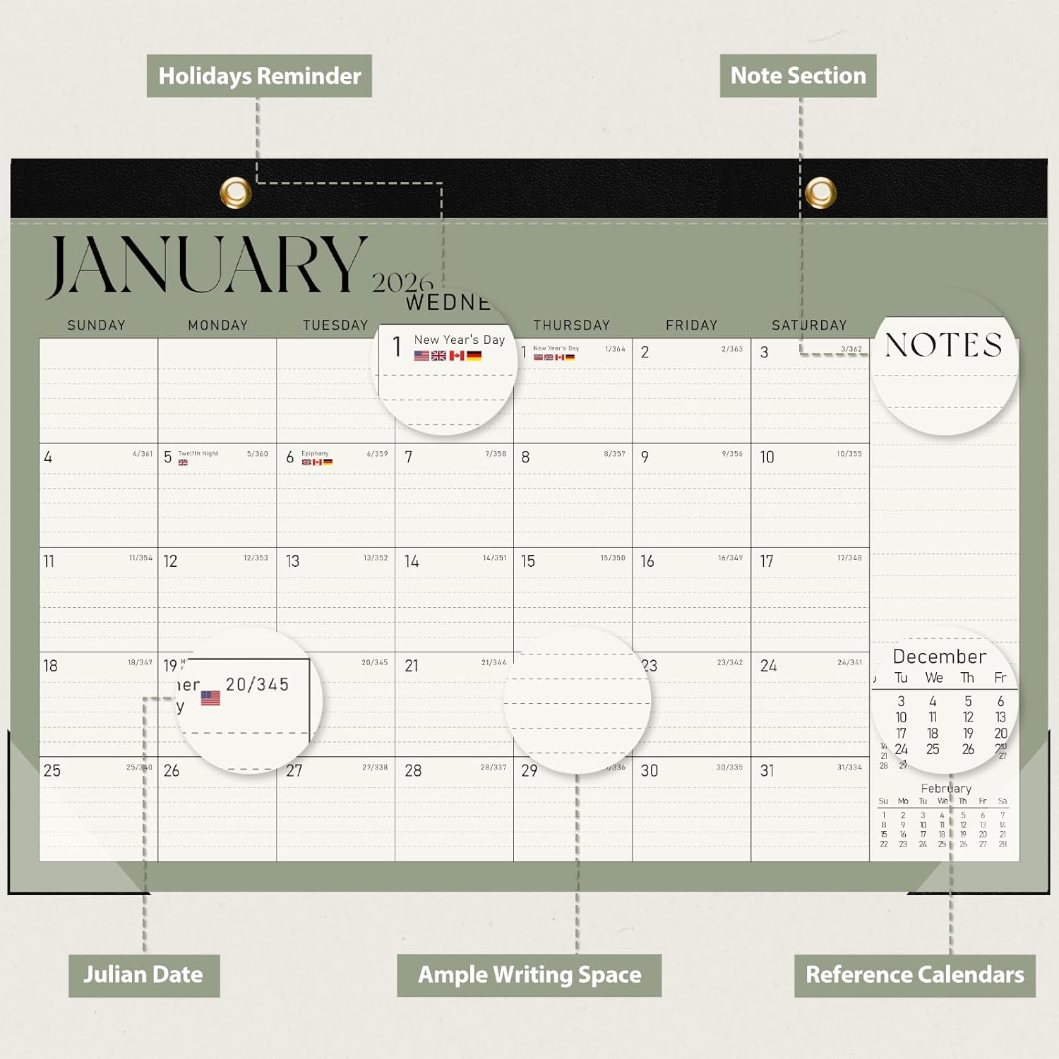 - [18 MONTHS CALENDAR] - Our 2025-2026 desk calendar (17"x12") covers 18 months from July 2025 to December 2026. With highlighted holidays and Julian dates, this calendar ensures you never miss an important deadline or event, making it perfect for long-term projects, school or teaching schedules, and work commitments.