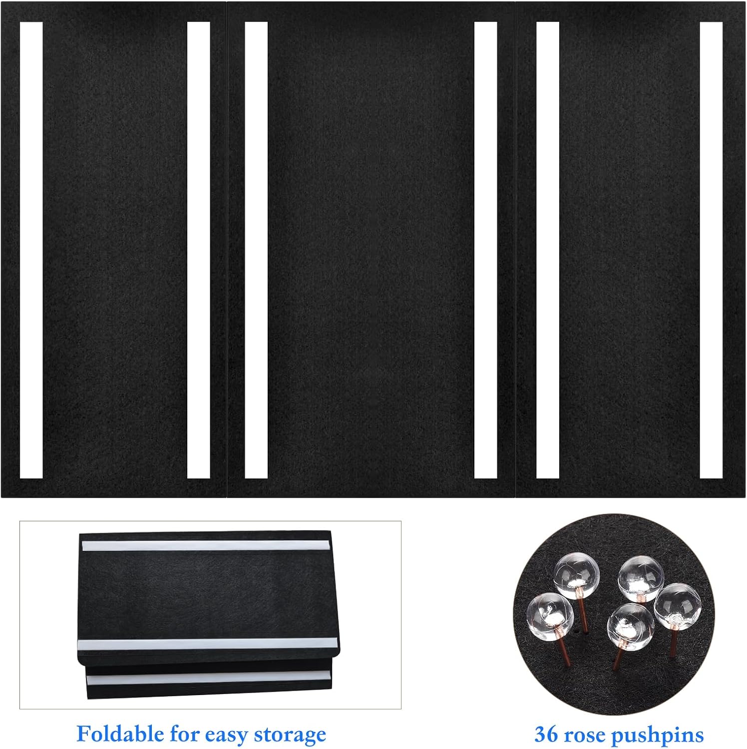 Large Bulletin Board - 60 x 36 Inches, Foldable Decorative Felt Board for Wall Photo Display Board with Self-Adhesive Tape, Includes 36 Push Pins - Black