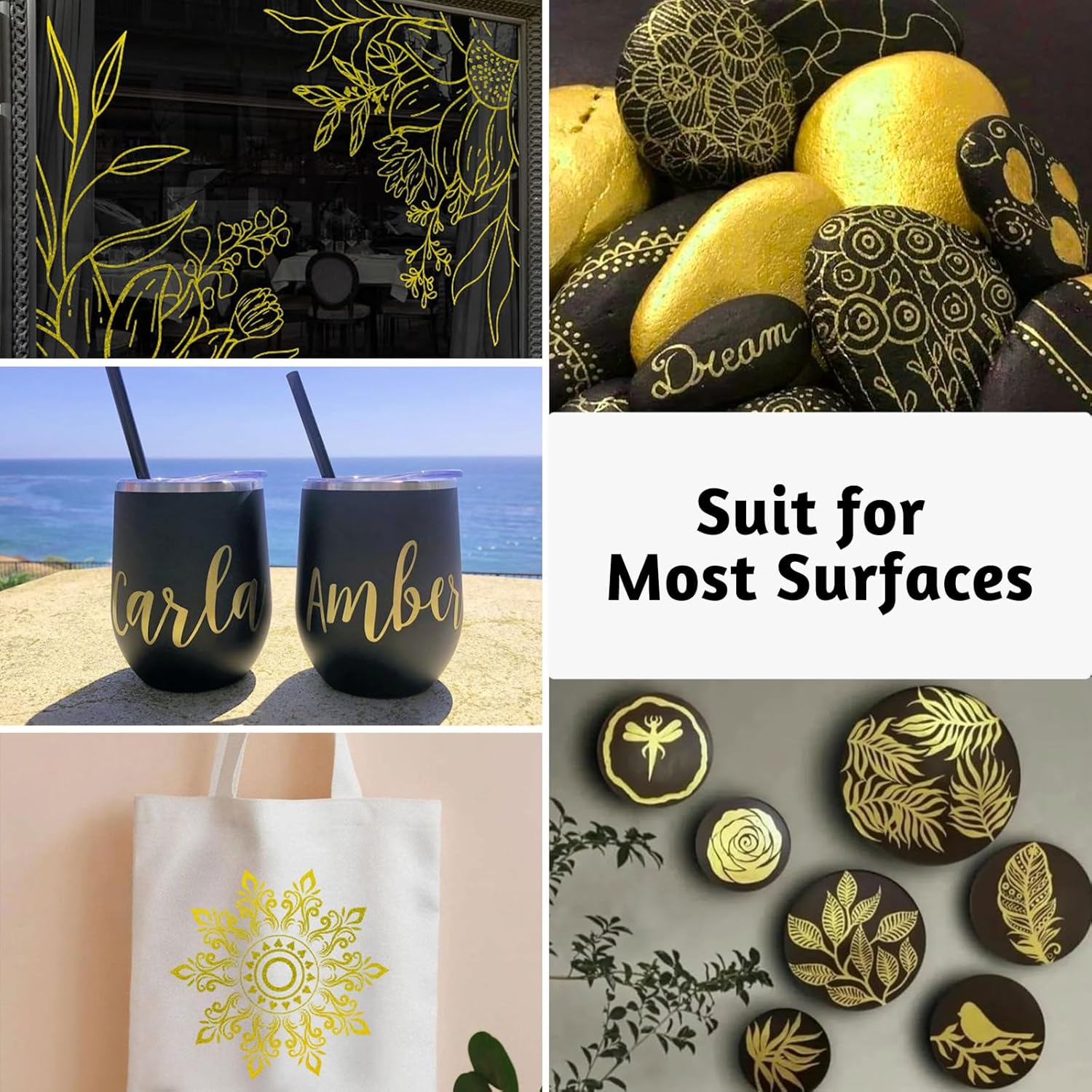 - OPAQUE ON DARK & LIGHT SURFACES - This rich, water-based formula provides excellent coverage and adhesion. The opaque gold color pops vibrantly on both black surfaces and light-colored materials, making it incredibly versatile.
