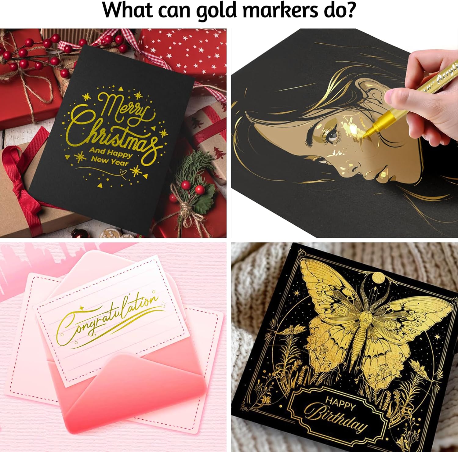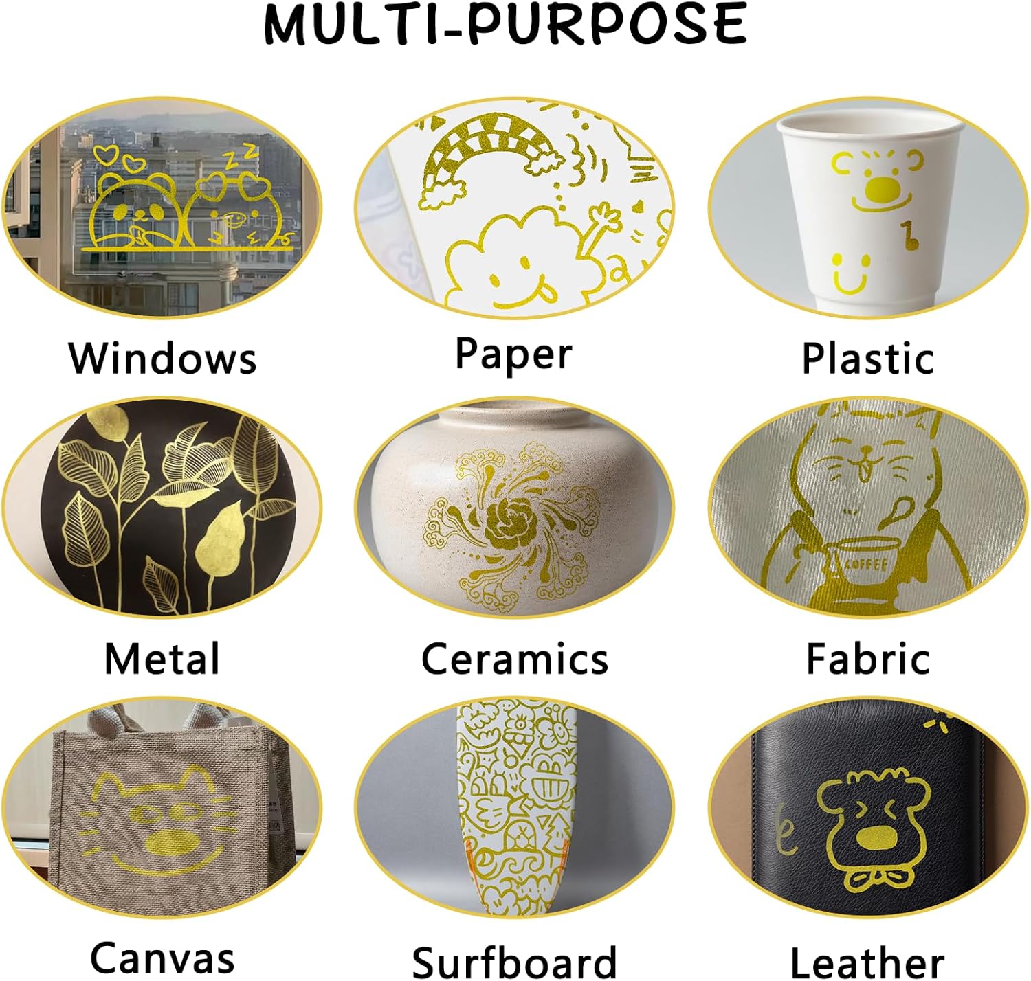 - PRECISE METALLIC GOLD LINES - Create stunning, intricate details with brilliant opaque gold! Our highly pigmented fine tip marker delivers a smooth flow of vibrant metallic ink, perfect for outlining, writing, and adding elegant accents to any project.