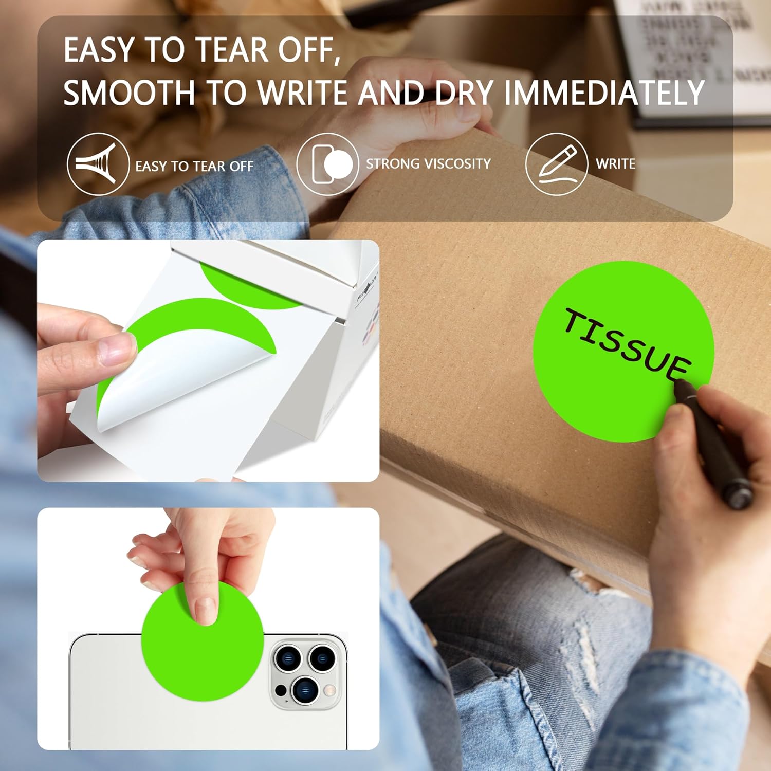 - The package includes 4 rolls 2000PCS 3x3 Inch round diameter light green color-code dots stickers, each roll sticker label in a individual plastic dispenser case and 4 rolls in a larger box.