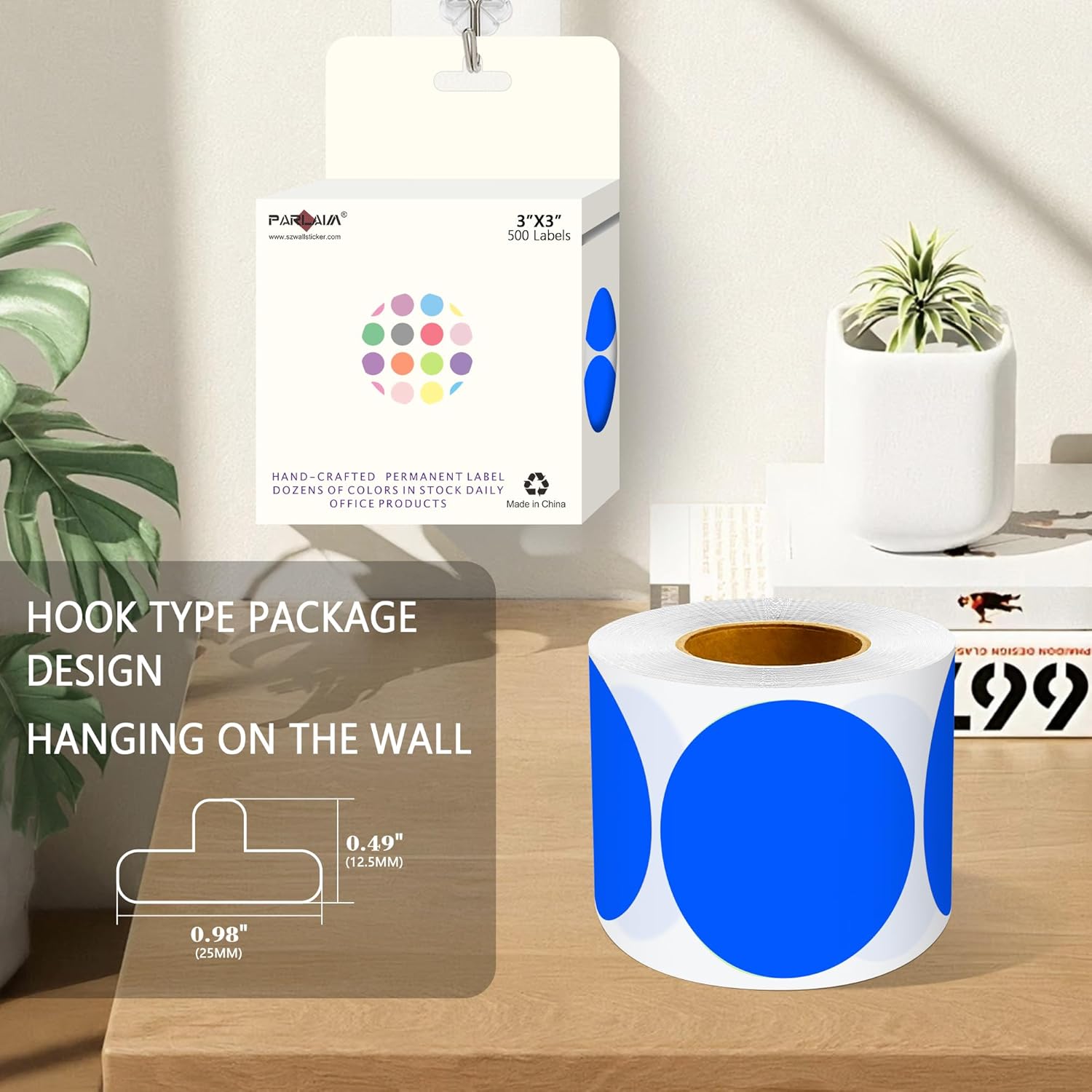 PARLAIM 3" Diameter Round Blue Color Coding Sticker, 4 Rolls 2000PCS Circle Dot Label,Permanent for Inventory Box Labeling
