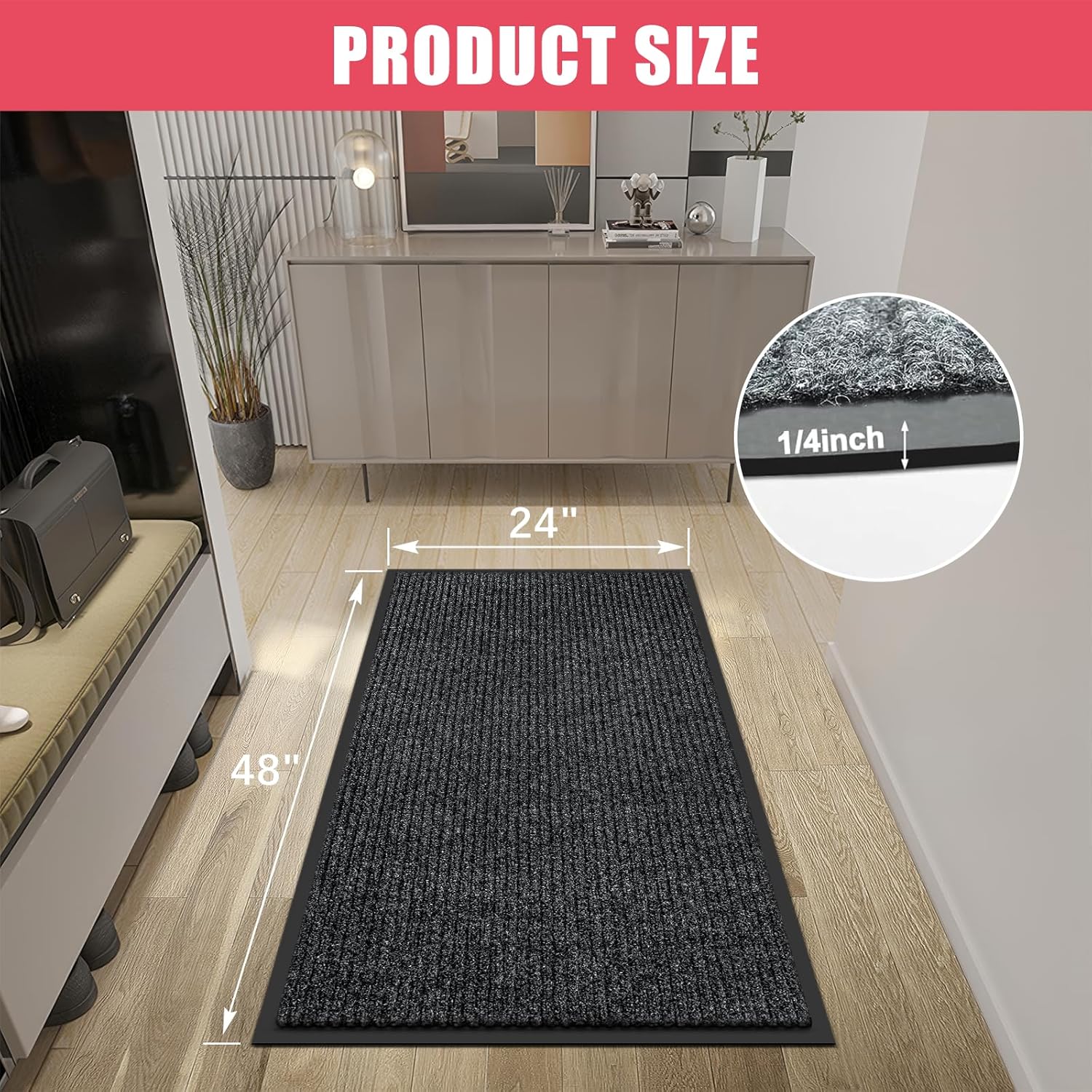Kuyal Front Door Mat, 2'x4' Indoor Outdoor Entrance Mat, Commercial Floor Mats Inside Outside Entrance, Heavy Duty Durable Welcome, Rubber Backing Non Slip Outdoor Mats for Entryway,Black