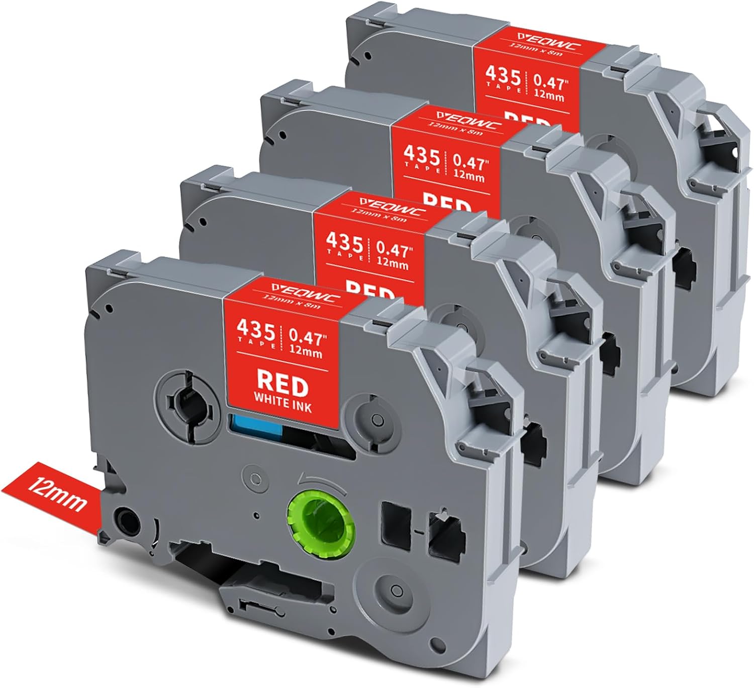 Tz Tape Tz-435 White on Red Label Tape Compatible for Brother Tze-435 Tze435 12mm 0.47 Laminated Tze 1/2 Refill Work for Brother Label Maker P-Touch PT-D210 PT-H110 PT-D220 PT-D200 PT-D400 PT-1080