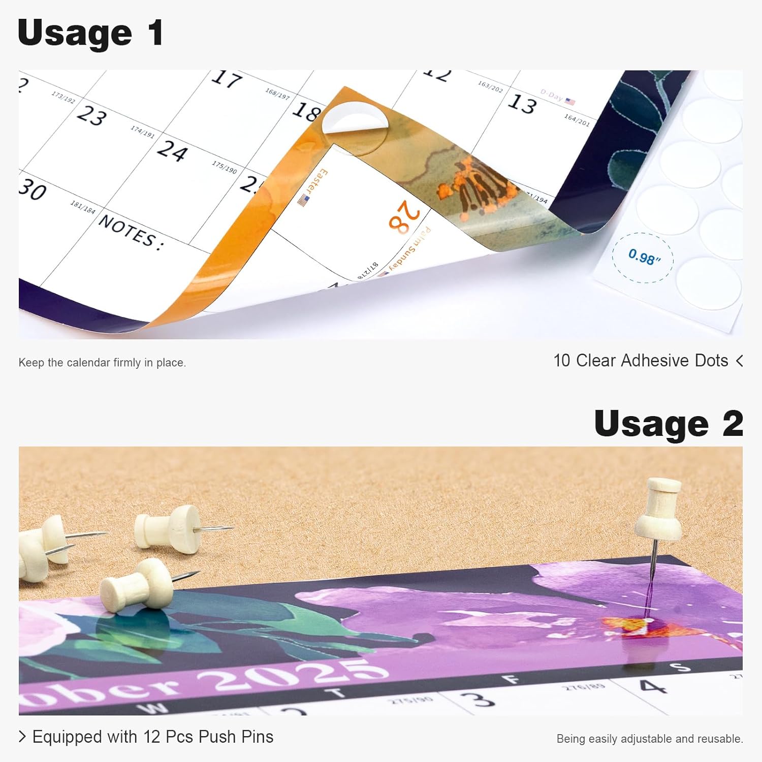 - ✨ 32" x 48" Yearly Calendar: Double-sided floral design calendar that is easy to hang using push pins, and is also easy to clean. Each date box measures 1.65'' x 1.77'' inches, providing ample space to jot down your daily tasks and even track your activities throughout the entire year.