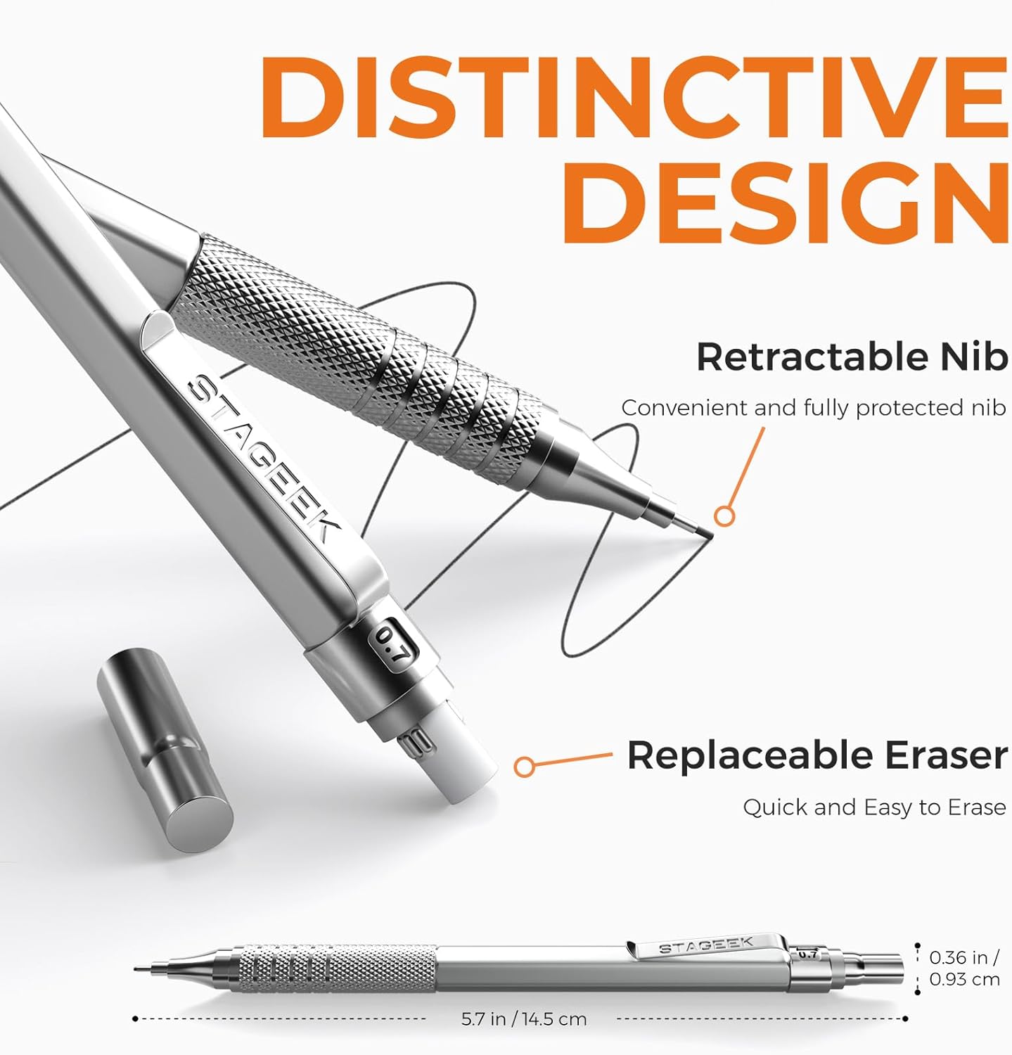 - All-in-One Mechanical Pencil Set: This mechanical pencil set includes 4 tip sizes (0.5 mm, 0.7 mm, 0.9 mm, and 2.0 mm) to meet various writing and drawing needs. 0.5 mm for everyday writing, 0.7 mm for smooth, thicker lines, 0.9 mm for bold annotations, and 2.0 mm for artistic creation. Whether for technical work or creative drawing, this set delivers excellent performance.