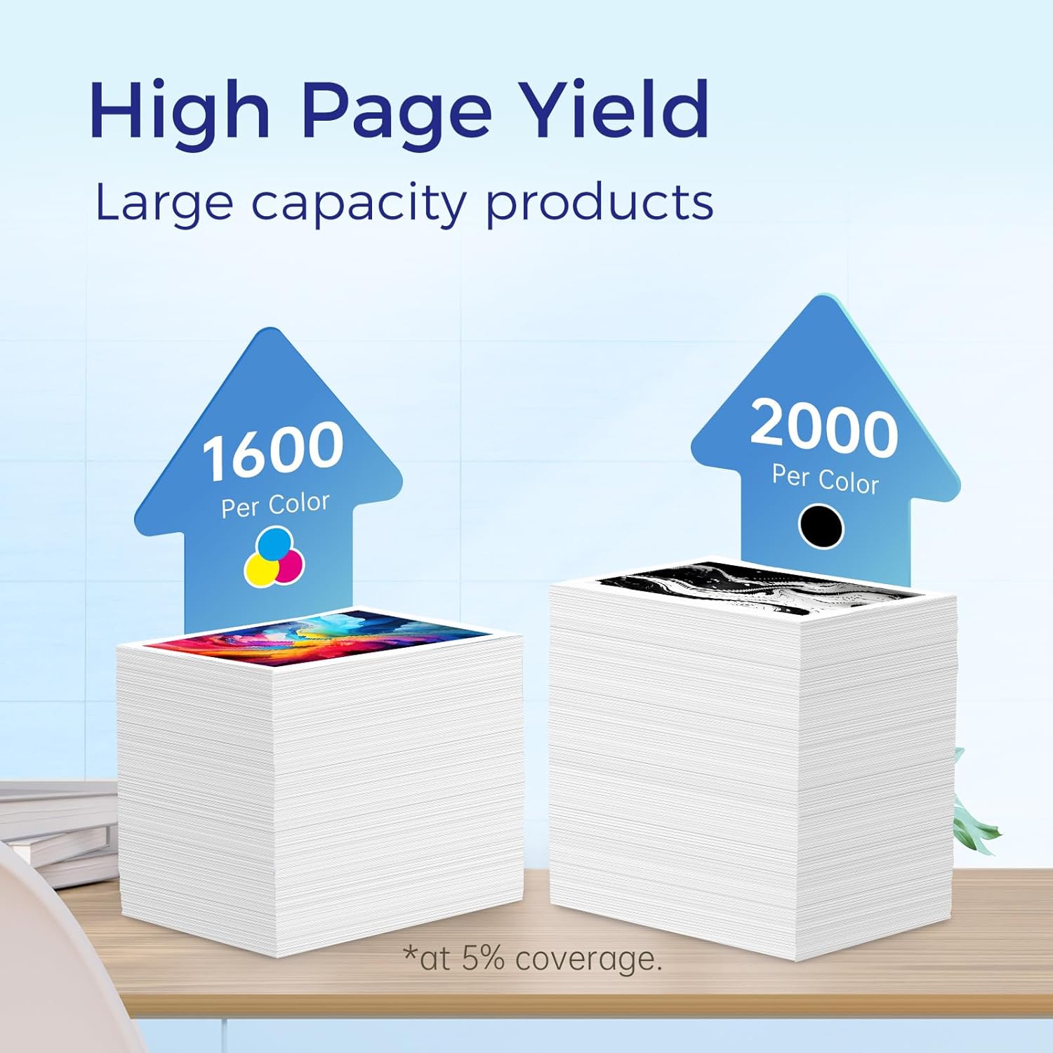- HIGH PAGE YIELD: The HP962xl/962 ink cartridge combo pack offers up to 2000 pages for the black 962 ink cartridge and 1600 pages for each 962xl color cartridge (cyan, magenta, yellow) at 5% coverage on A4 paper