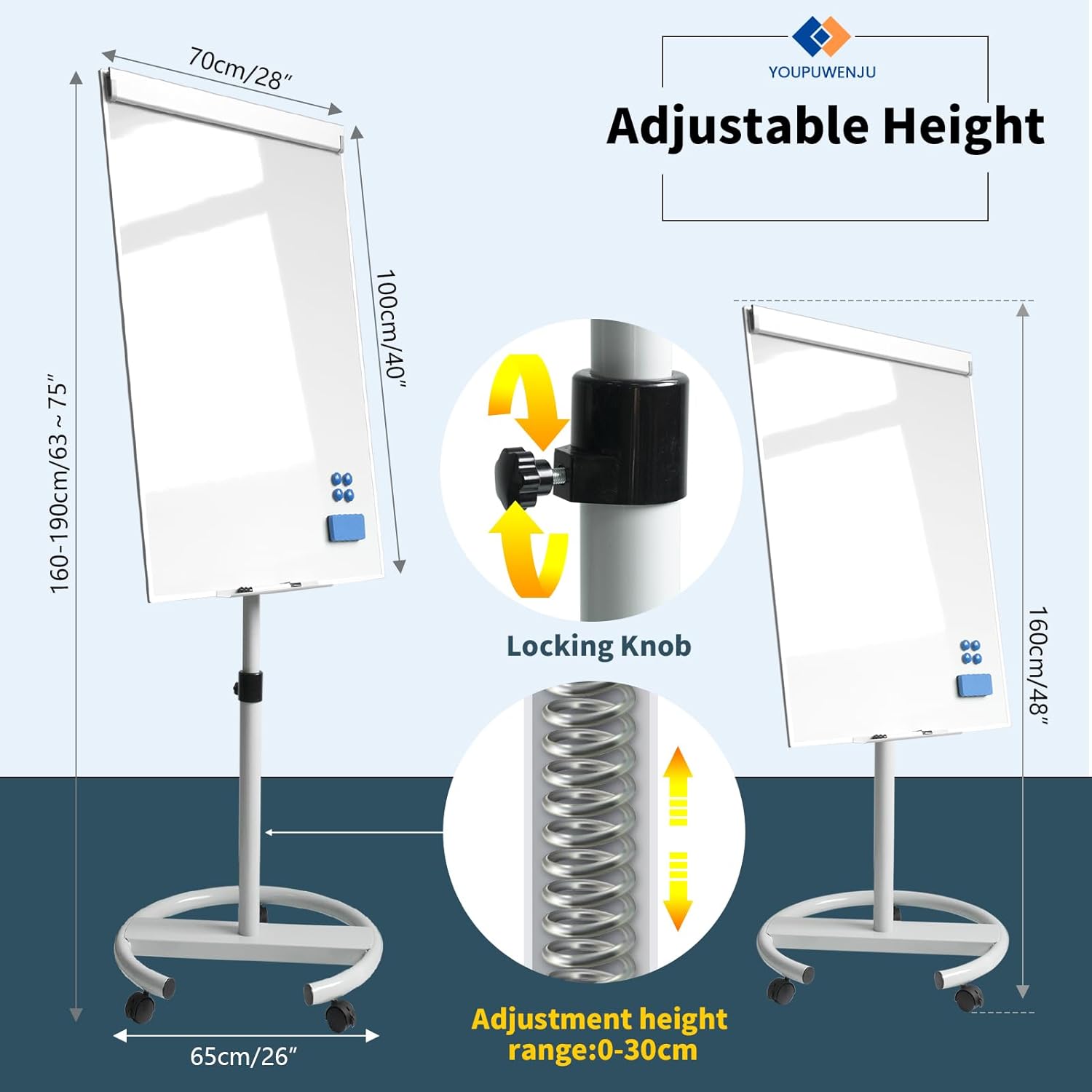 - Easy to Move & Lock: Mobile Whiteboard feature 5 durable 360 degrees caster wheels which have brakes, allow you to easily move this whiteboard and lock it in place, makes your presentation, teaching or training more efficient and orderly.