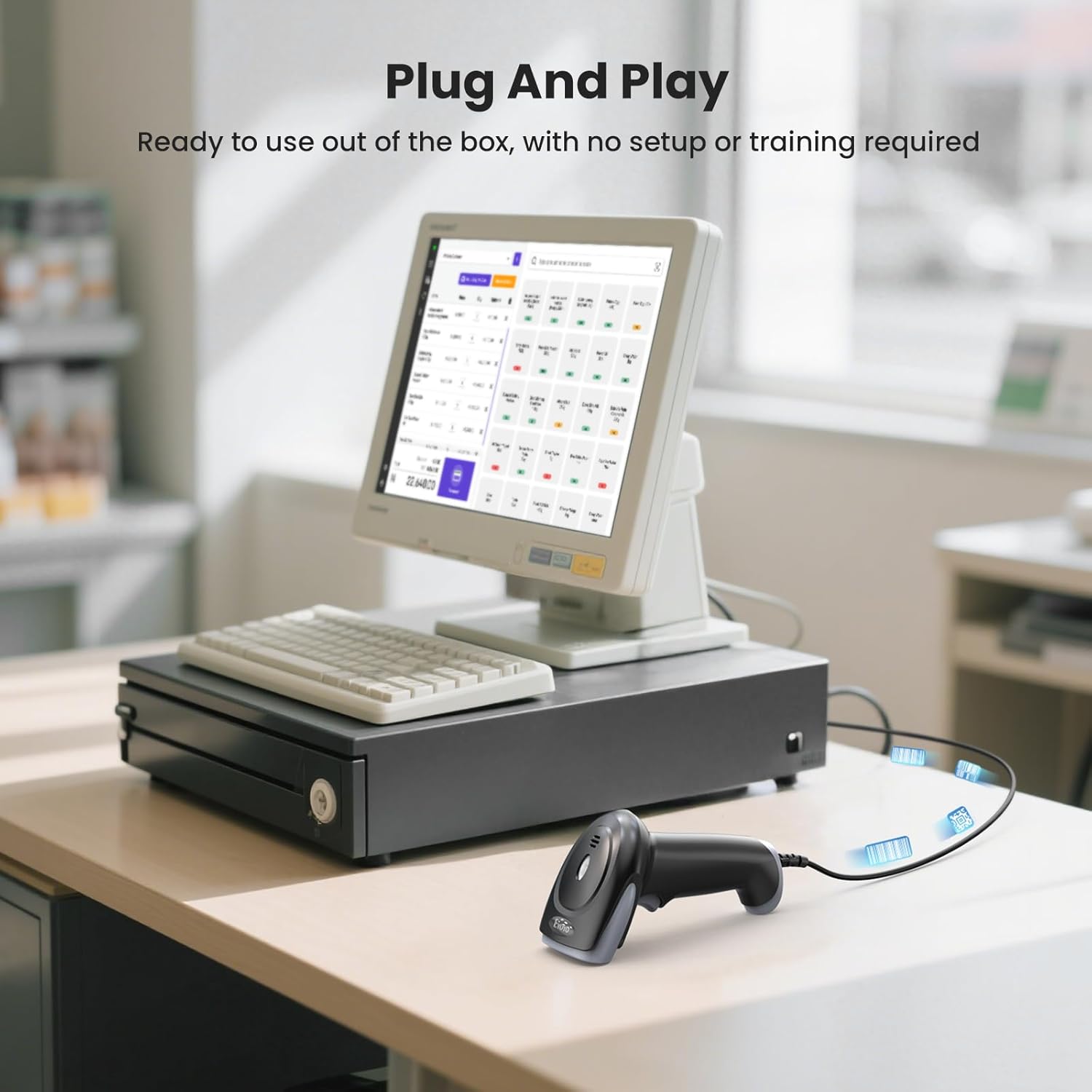 - USB Plug and Play Design: The plug-and-play design making EY-034Y usb barcode scanner provides the power to improve operational efficiencies right out of the box, virtually eliminates setup and installation hassles, and practically eliminates training requirements, employees are up and running in minutes, increased productivity from the start for faster return on investment. Compatible with Window, MacOS, Linux for your computers, laptops, PC and POS