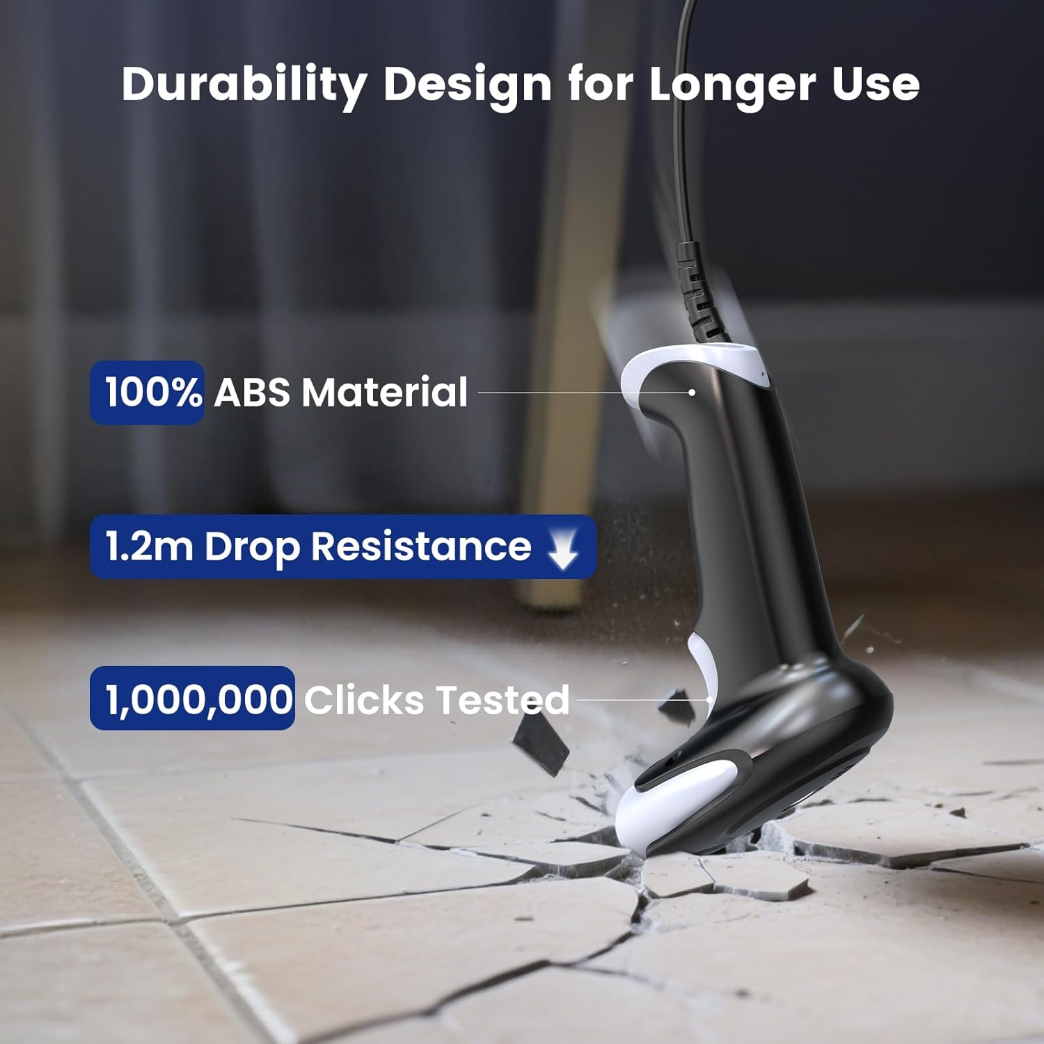 - Durability Design for Longer Use: This handheld barcode scanner is engineered for durability, built to survive multiple 5 ft (1.5m) drops to concrete, easily stand up to daily use and those inevitable drops. beside, ergonomic and lightweight balanced design provides reliable comfort, reduced user fatigue and increased worker productivity