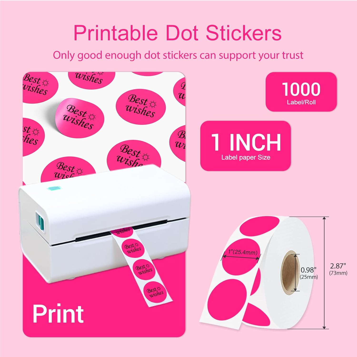 - What You Will Get: Each roll contains 1000 pieces of 1 inch round thermal labels. These color-coding sticker dots are easy to peel off and apply to various surfaces. Fluorescent pink color round stickers are suitable for home sorting, office organization, business displays, etc