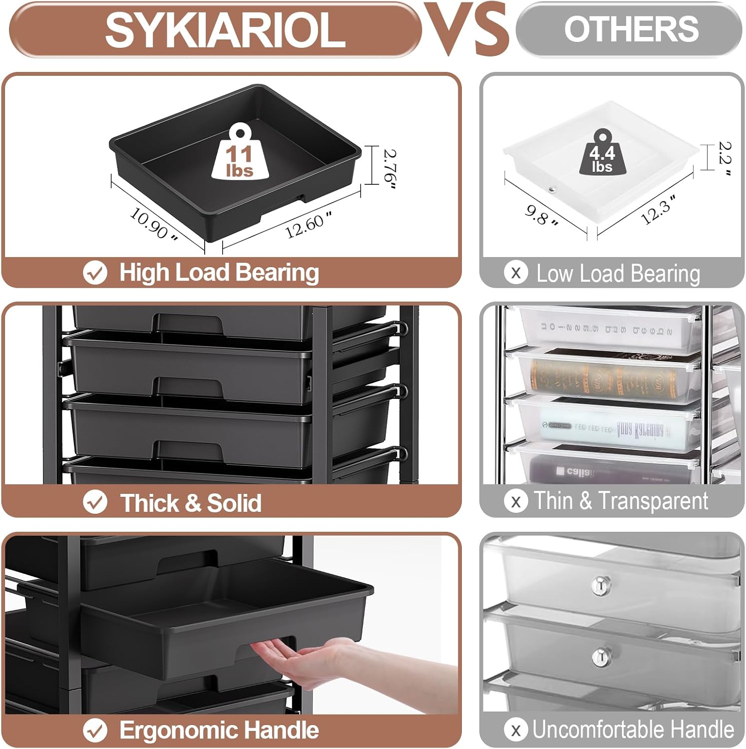 - HIGHT-QUALITY: rolling drawer cart with high quality wooden tabletop, capable of bearing up to 33 pounds. Storage cart with drawers adopts a rust proof coating frame design, which is stable and durable. Every drawer can hold 11 pounds. rolling art cart with drawers designed in different colors provide you with unique styles that can better match your usage scenarios. Drawer dimension: 12.6“D x 10.9"W x 2.76"H.