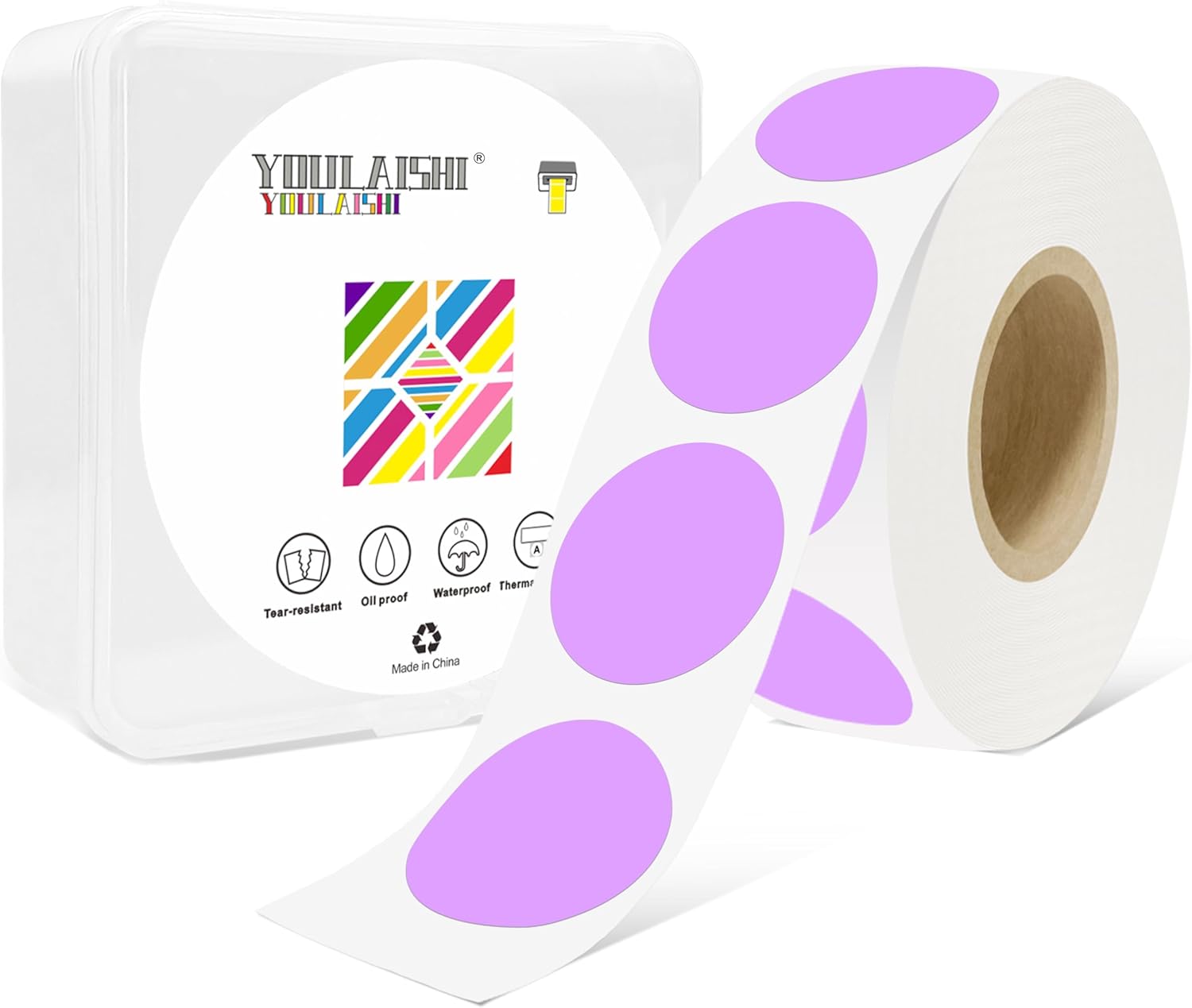 - What You Will Get: Each roll contains 1000 pieces of 1 inch round thermal labels. These color-coding sticker dots are easy to peel off and apply to various surfaces. Light purple color round stickers are suitable for home sorting, office organization, business displays, etc