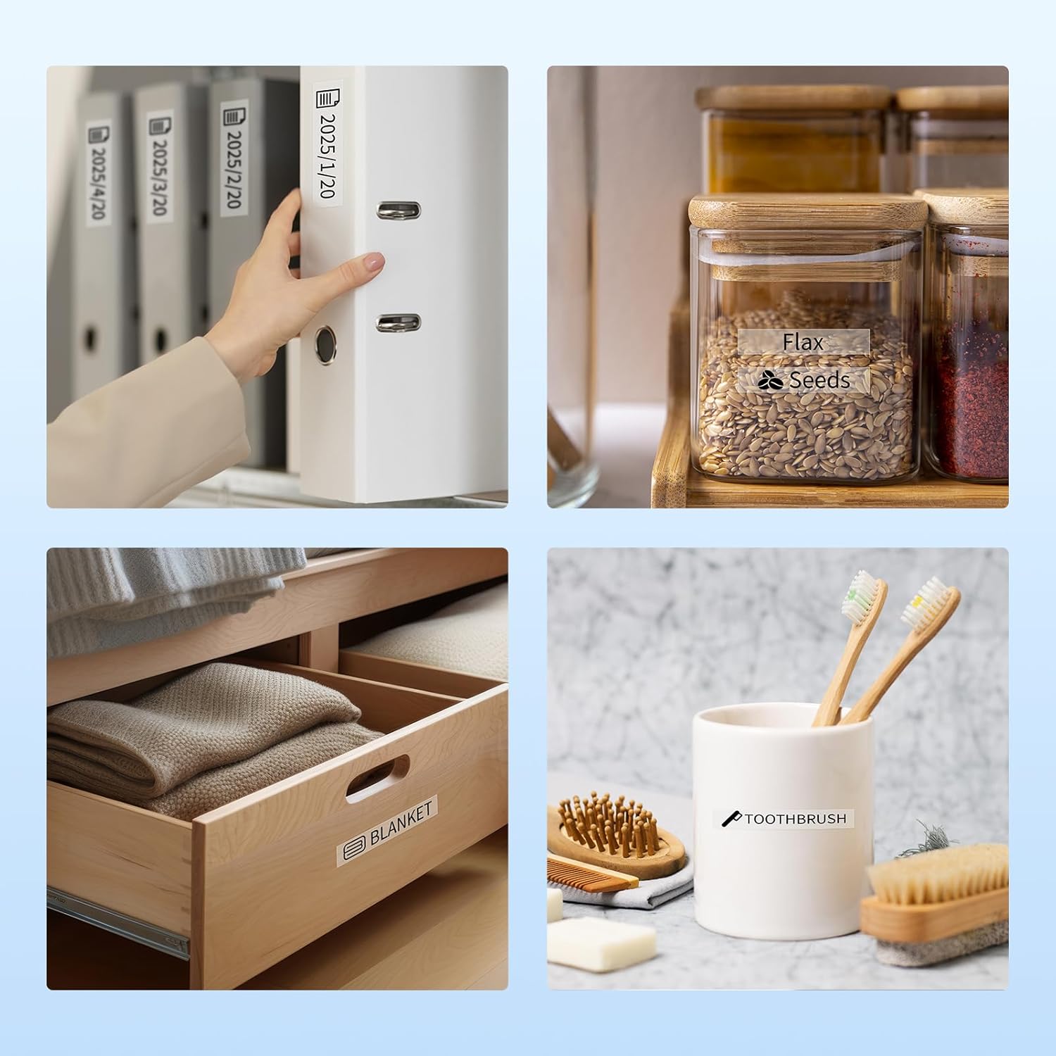 - 【Easy Peel & Apply】Compatible with brother p-touch label tape clear Innovative center-split backing allows labels to peel off smoothly and adhere quickly, saving you time and effort.