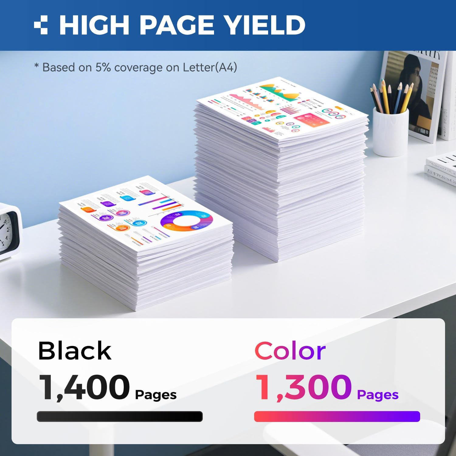 - High Yield Pages: 1,400 pages for Black and 1,300 pages Color toner cartridge (A4, 5% Coverage).