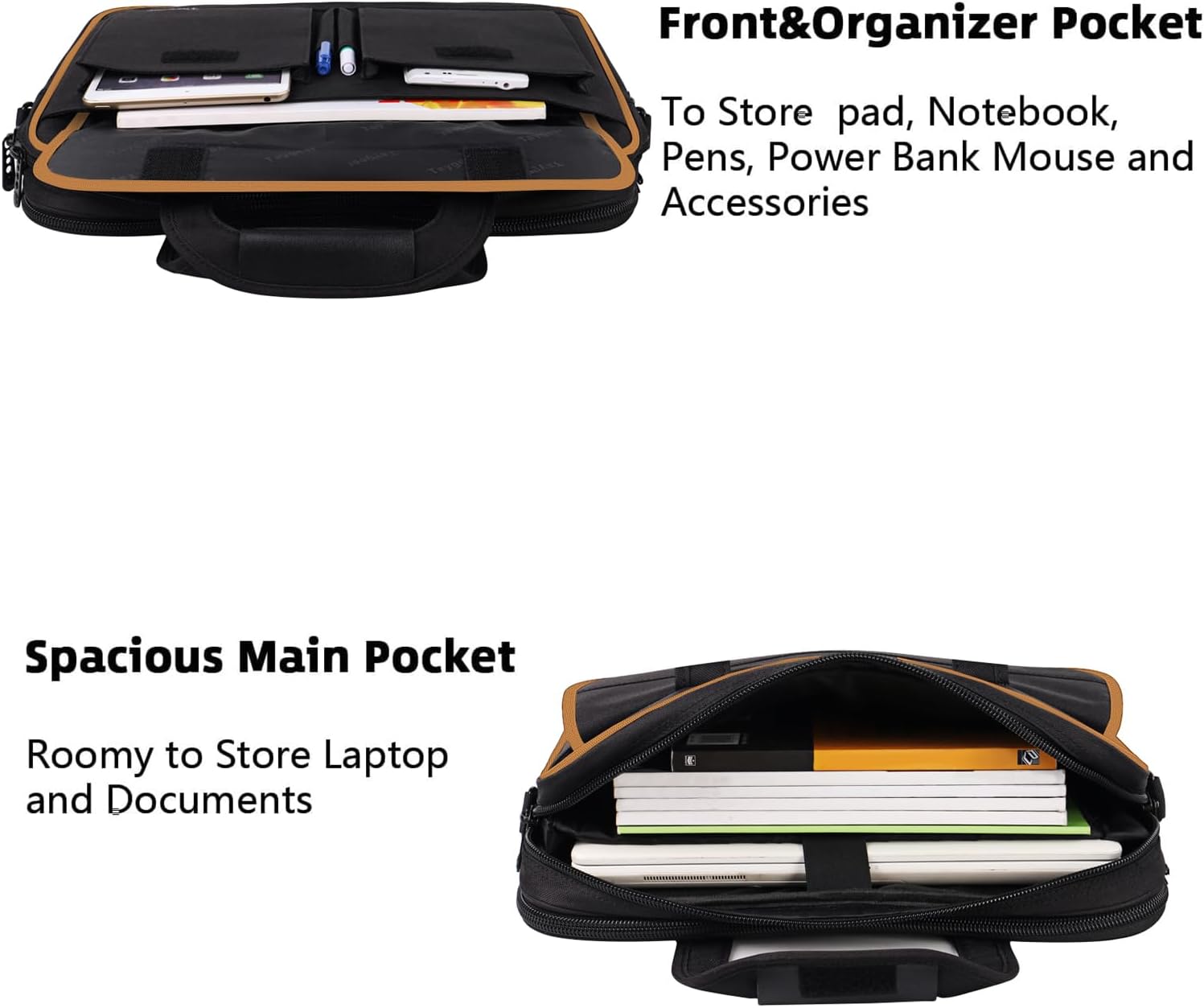 - Multi-Compartment Design for Smart Organization:Stay organized and efficient. The laptop bag for men features multiple compartments, including 2 external pouches, 2 pencil holders, and several internal pockets under the flap for documents, chargers, mouse, notebooks, and more. The main zippered compartment has a padded sleeve that padded sleeve fits most 15.6 inches laptops. An additional invisible back zipper pocket for storing valuables while commuting or traveling