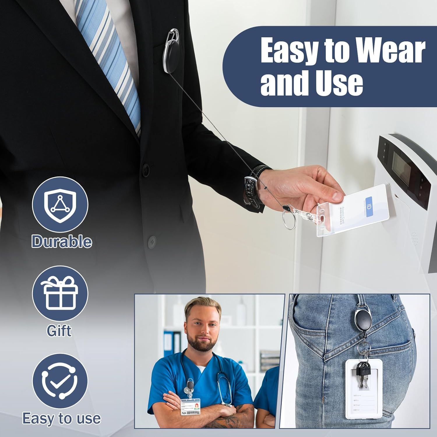 - Package Includes: you will get 180 packs of retractable badge clips, featuring plastic covers, keychain, retractable reel clip for fastening to belt loops, straps, backpacks, bags effortlessly and quickly, allow a quick and easy way to scan or swipe your badge