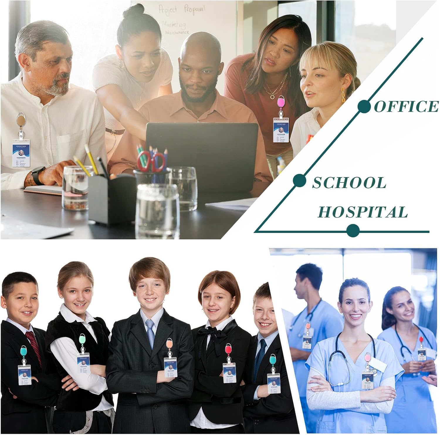 - Versatility: these retractable badge holder reels are suitable for carrying ID cards, name cards, credit cards, driver's license, bus cards, hotel key cards, etc., appropriate for nurses, teachers, students, maintenance staff, office staff, police, firemen, volunteer and more
