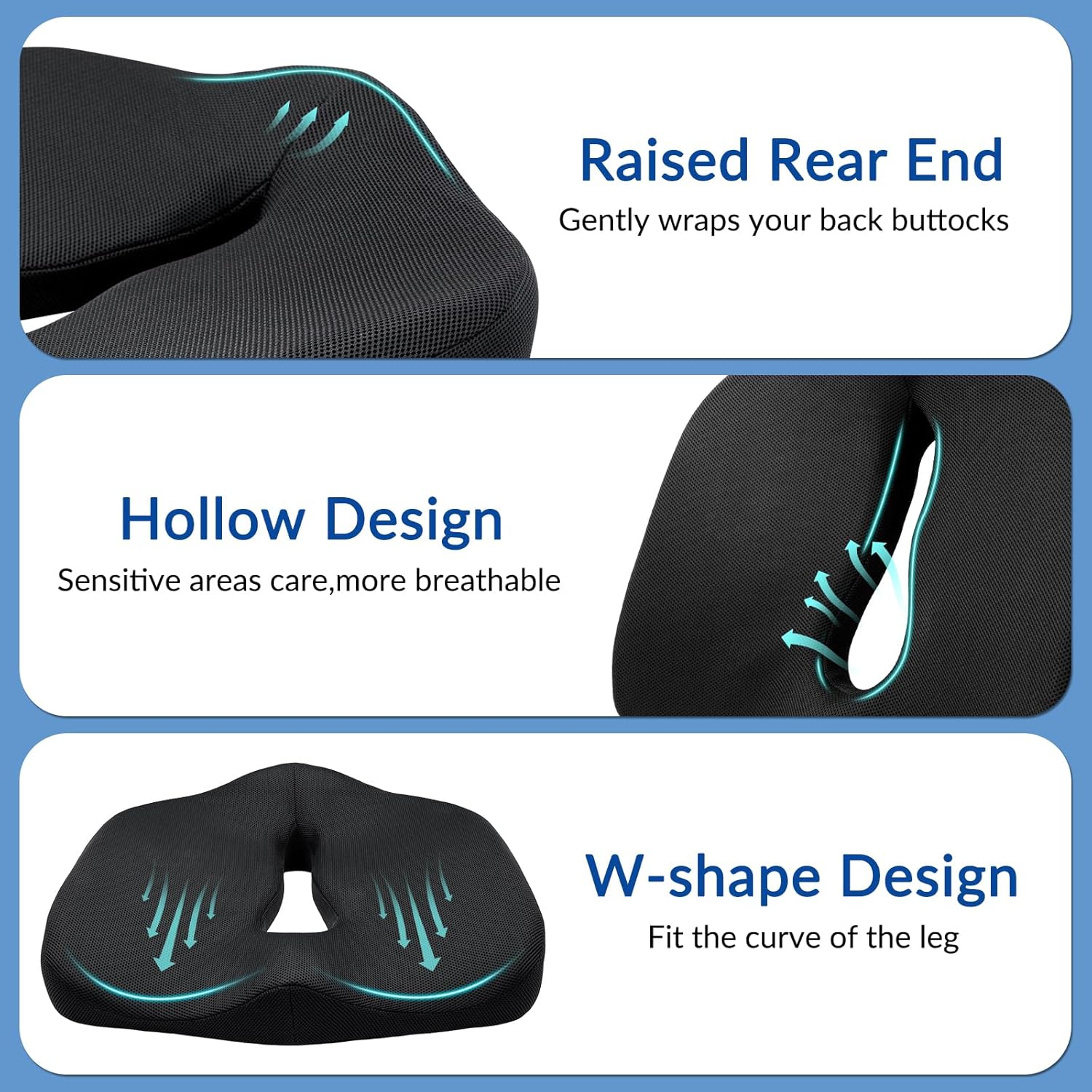 - Helps Relieve Lower Back & Coccyx Pain: The contoured design helps alleviate discomfort from the lower back, sciatica, and hip areas. Ideal for people with sedentary lifestyles, it improves daily comfort and helps minimize pain from extended sitting.