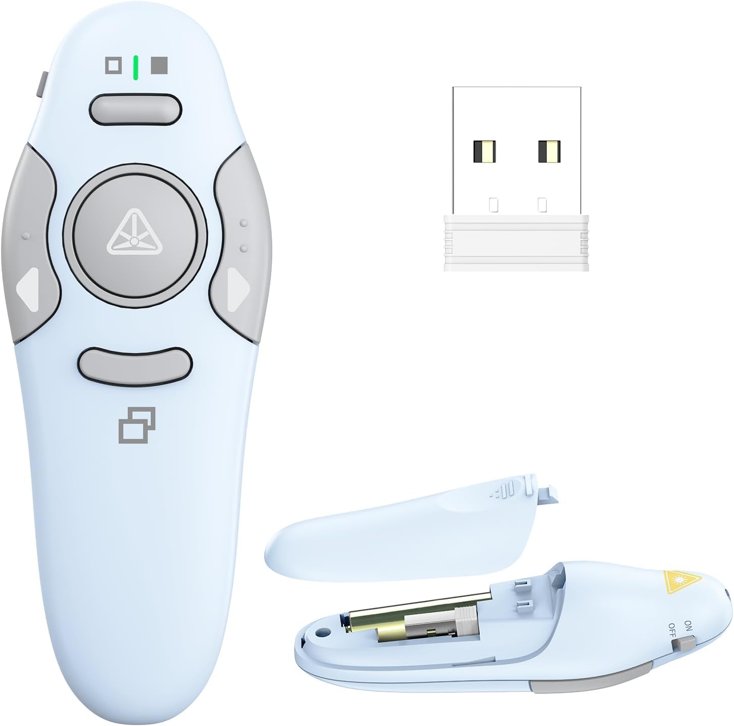 - Easy to Plug & Play: Designed for easy use, this wireless presenter requires no software installation. Just insert a AAA battery (not included), plug the 2.4GHz USB receiver into your computer, and you’re all set. It’s a must-have for classrooms, boardrooms, and beyond