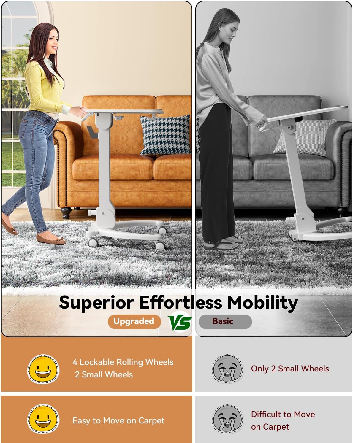 - Gas Spring Height Adjsutable: The height of the rolling computer desk can be adjusted from 29.9" to 44.9" with one-button lifting (without wheels). Using pneumatic technology, the lifting process is smooth and fast, and easy to switch between sitting and standing positions