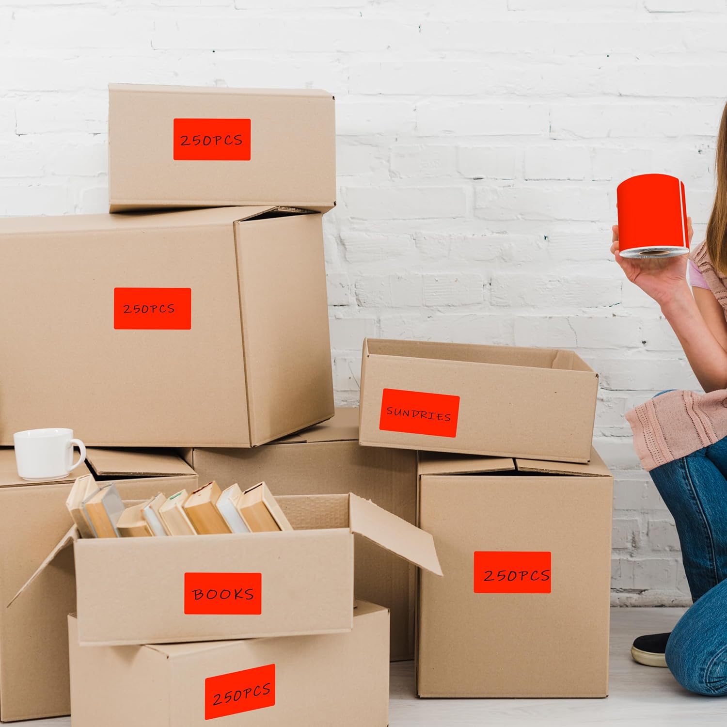3 x 5 Inch 250Pcs Rectangle Color Coding Stickers,Strong Adhesion Easy to Write Label for Moving,Box Organization,Inventory,Business,Fluorescent Red