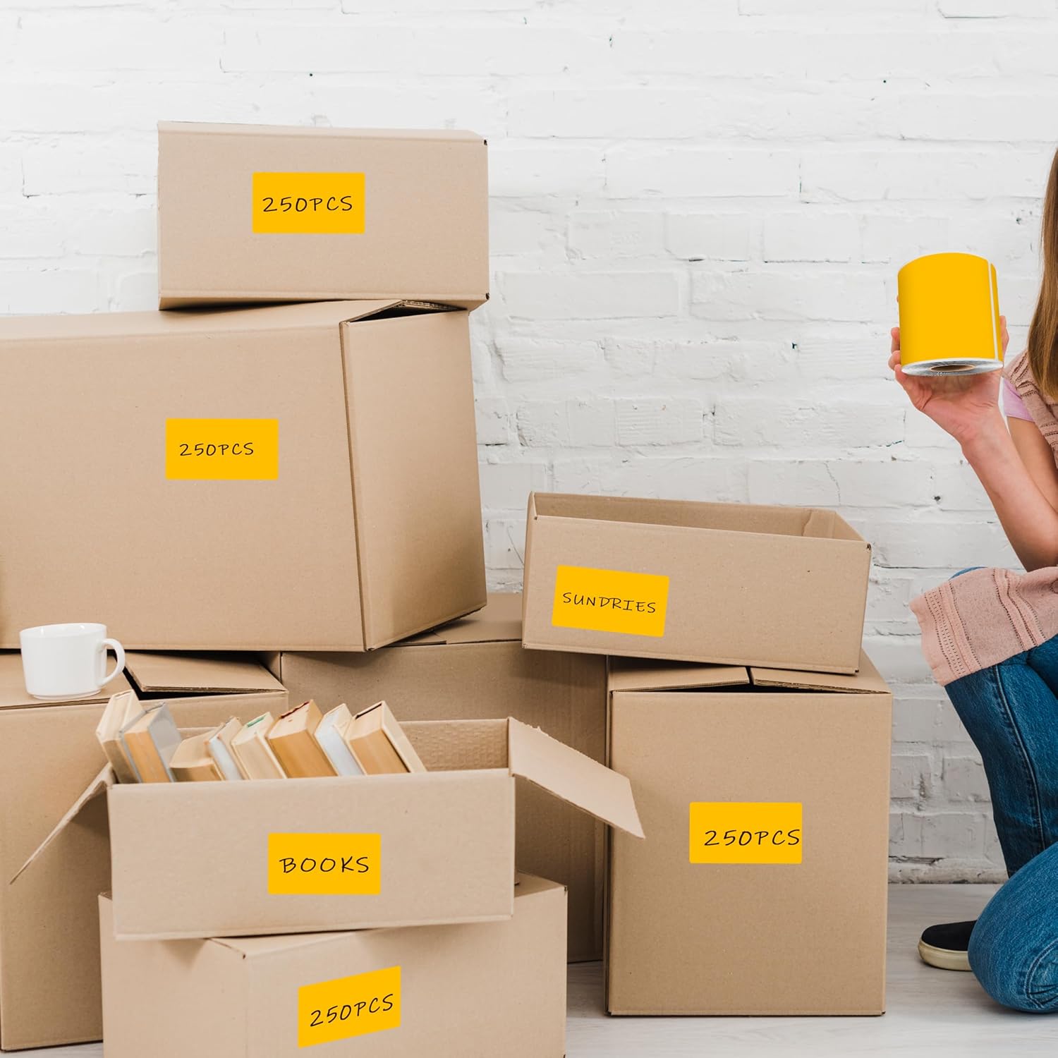 3 x 5 Inch 250Pcs Rectangle Color Coding Stickers,Strong Adhesion Easy to Write Label for Moving,Box Organization,Inventory,Business,Fluorescent Orange