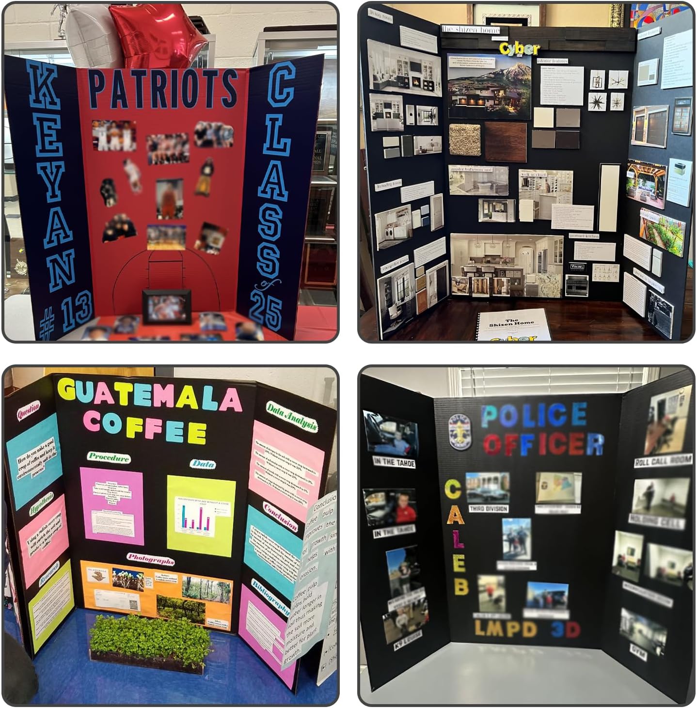 - 【Durable Corrugated Display Boards】Made from three-layer corrugated cardboard, these black trifold boards are lightweight yet firm. Designed to resist bending and damage, they’re ideal for long-term use in educational, creative, or professional settings.