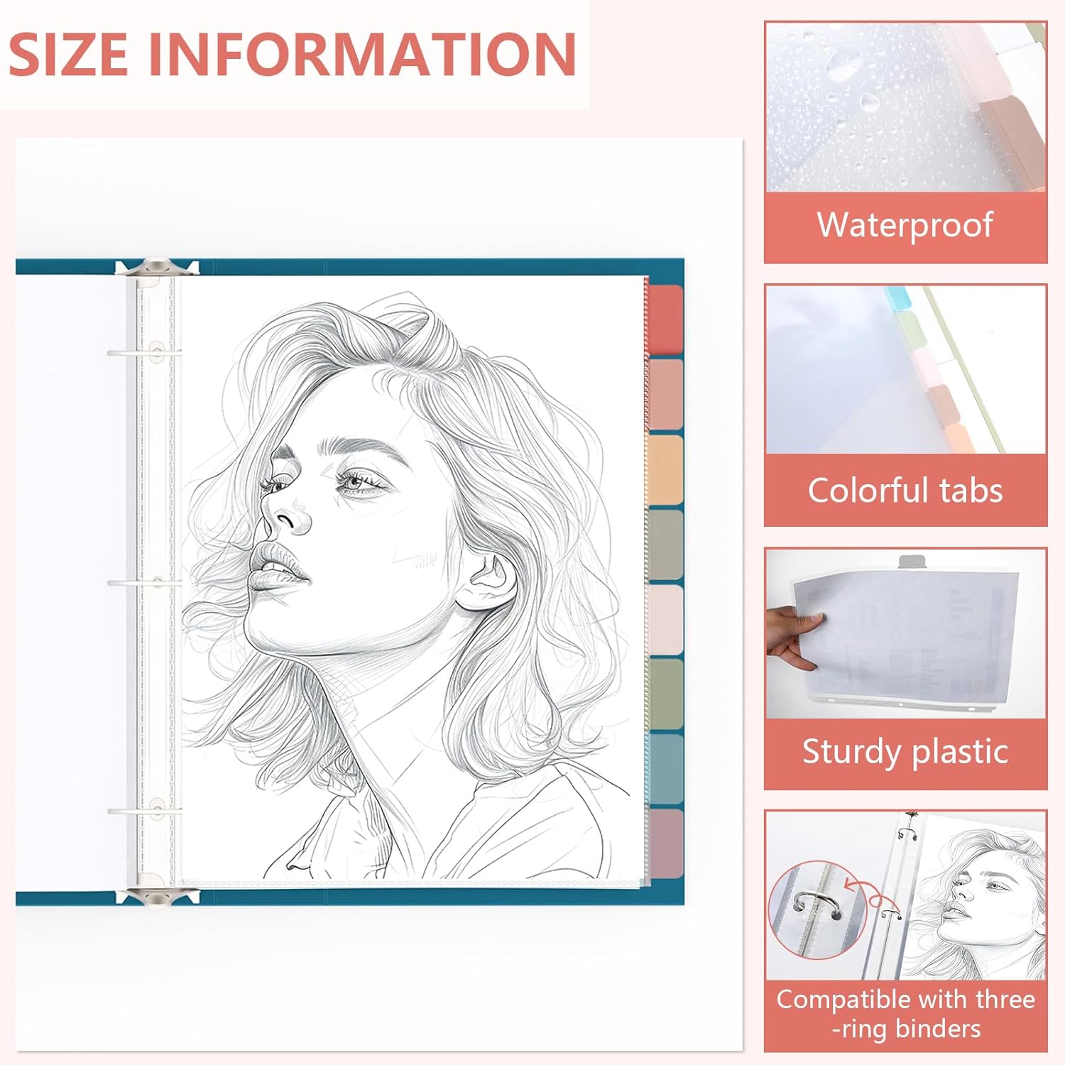 - Colorful index tabs for easy organization: Each set comes with 8 different colored index tabs, allowing you to categorize and quickly locate sections within your documents. The transparent page protectors provide clear visibility, ensuring you can find information at a glance.