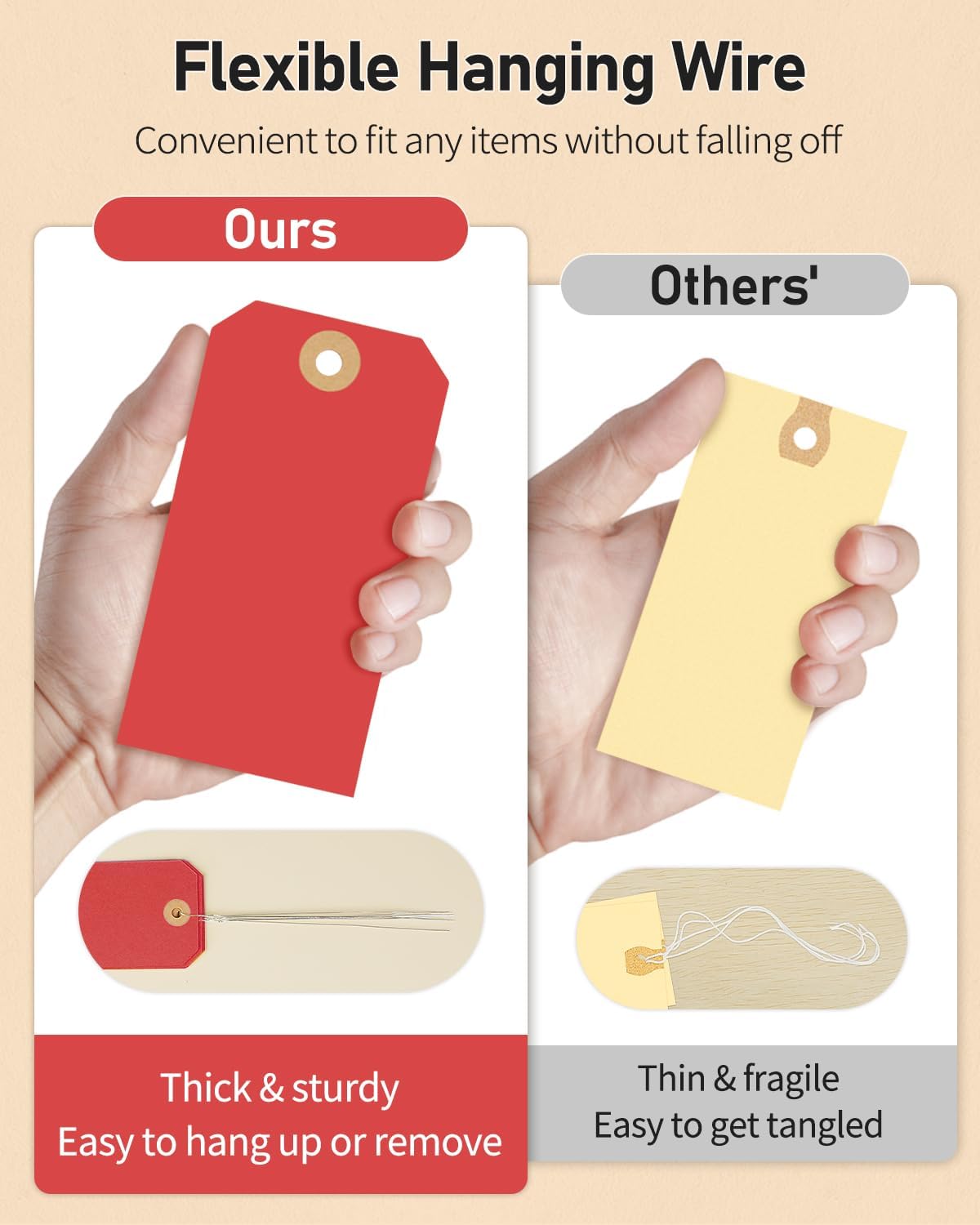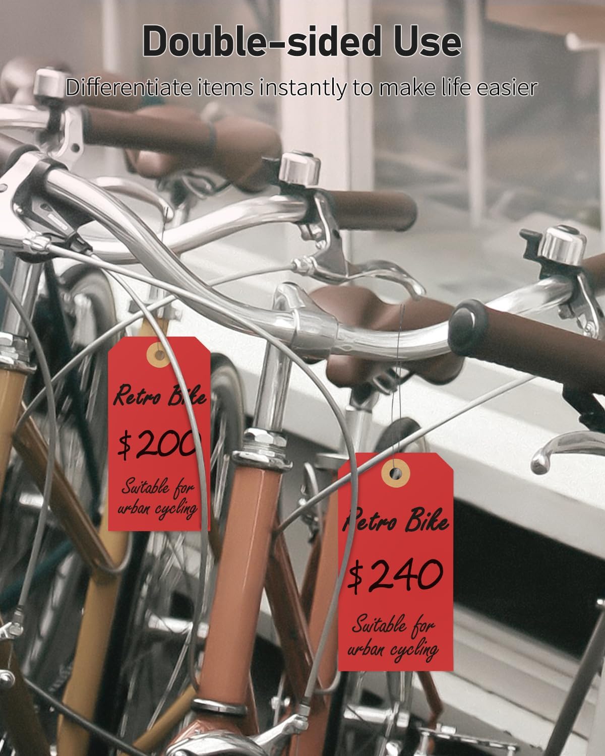 - Versatile Hanging Tags: Totally 100 red Blank tags are perfect for marking goods, clothes, jewelry, stationery, crafts, toys, luggage, etc. Great to be used as price tags, shipping tags, inventory tags and so on
