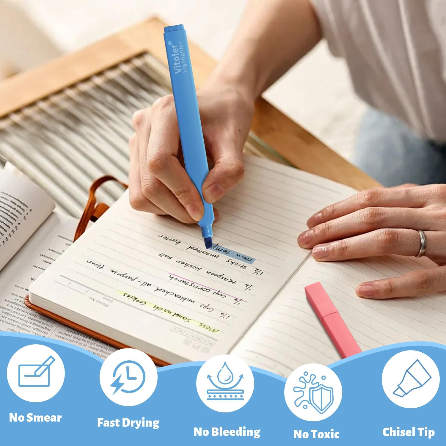 - Chisel Tip: Soft chisel tip for both broad highlighting and precise underlining, ensuring smooth, skip-free strokes without damaging paper.