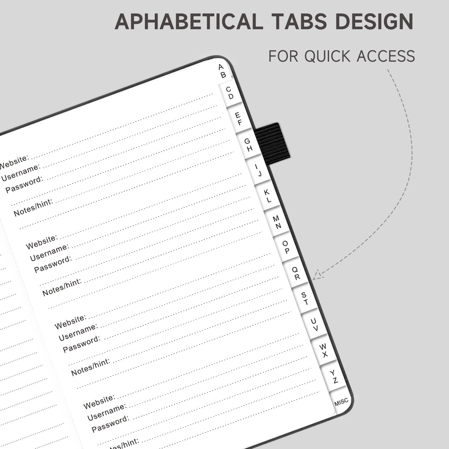 - Premium Quality - TUPARU password notebook's hardcover is made of high-quality leatherette material which looks really beautiful on the outside. And this internet address book comes with an accordion back pocket, one ribbon bookmark, a pen holder, and an elastic band.