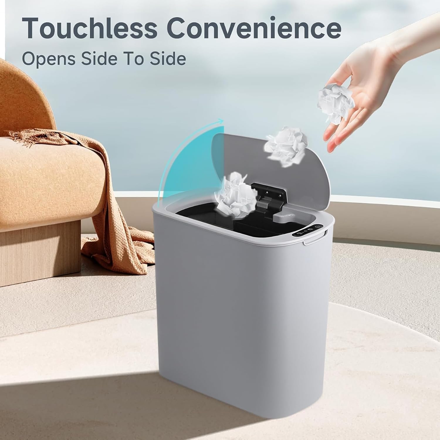 - 【Touchless Trash Can】Adopts advanced infrared technology. The lid opens when your hand or any object is detected in the sensing area, eliminating the need for direct contact, particularly beneficial for individuals with mobility challenges. Requires 2 AA batteries (not included)