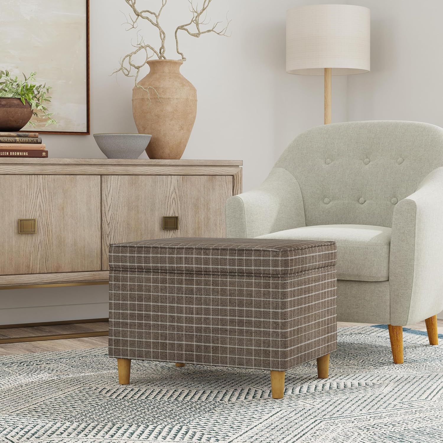 Home Decor | Dinah Collection Modern Storage Ottoman | Ottoman with Storage for Living Room & Bedroom(Brown Windowpane Fabric)